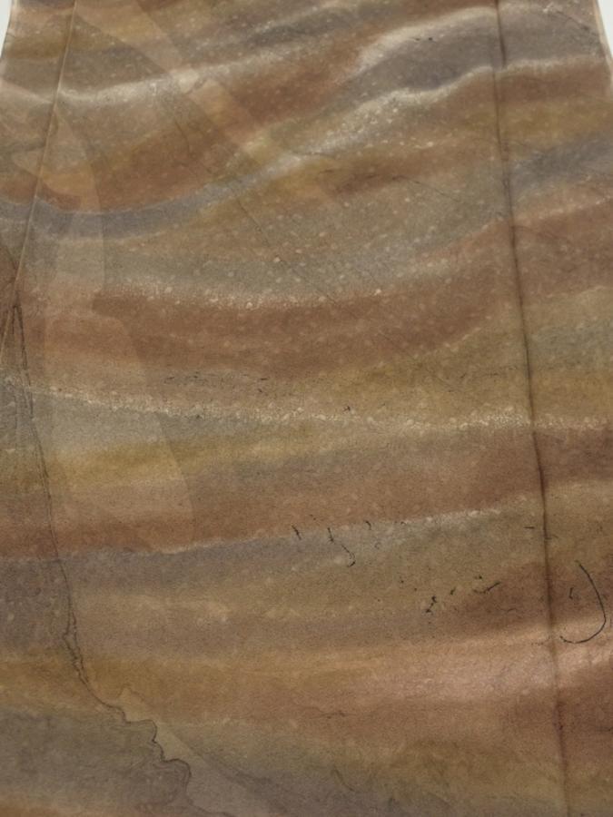 1T04z90 Japanese Kimono Silk FABRIC Suminagashi Brown-Gray 65.4x14.2