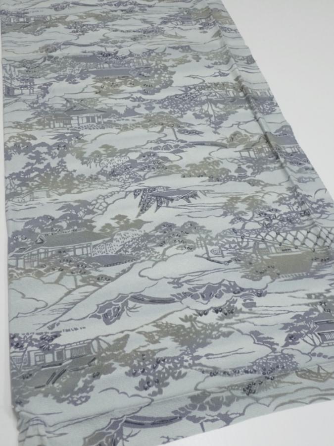 1Y01z50 Japanese Kimono Silk FABRIC Scenery Light blue-gray 40.2x15.0