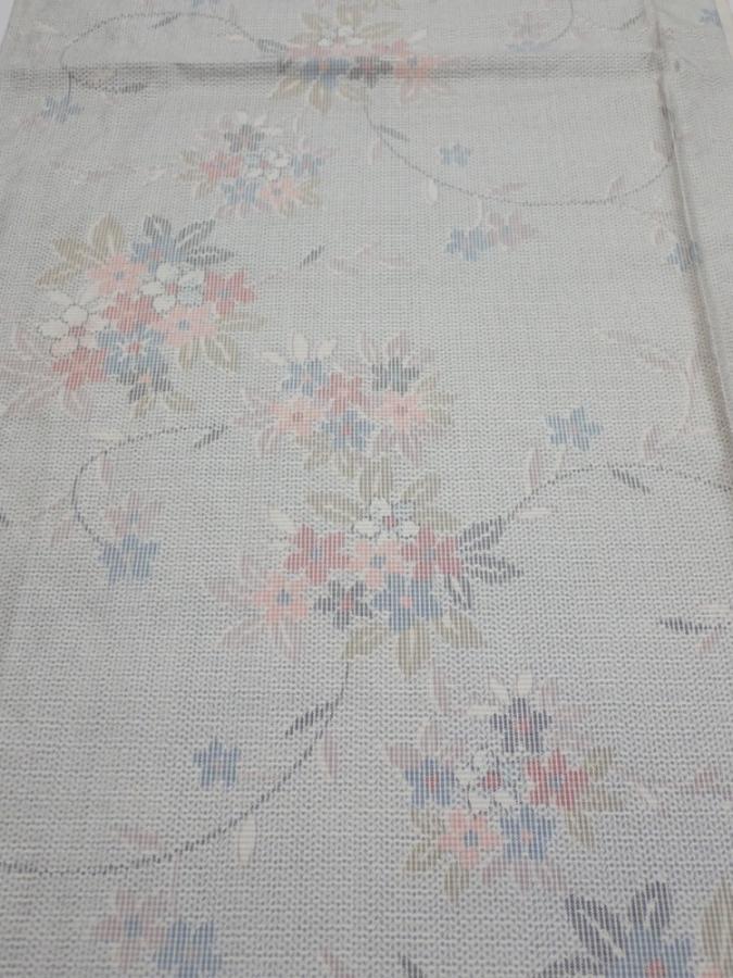 2N02z40 Japanese Kimono Silk TSUMUGI FABRIC Flowers Light gray 39.8x15.0