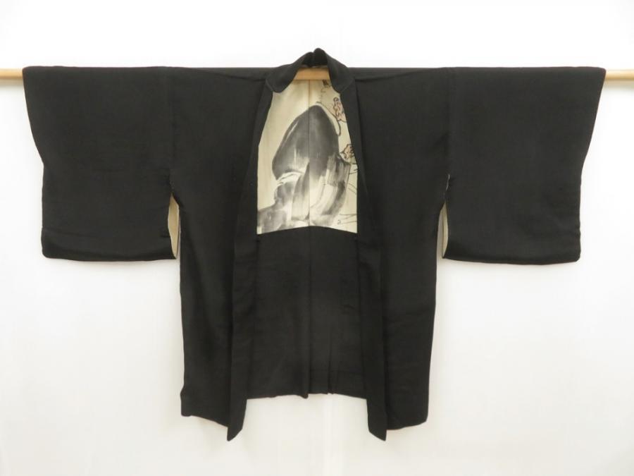 5316T09z410 Vintage Japanese Kimono Silk HAORI Ogre Black