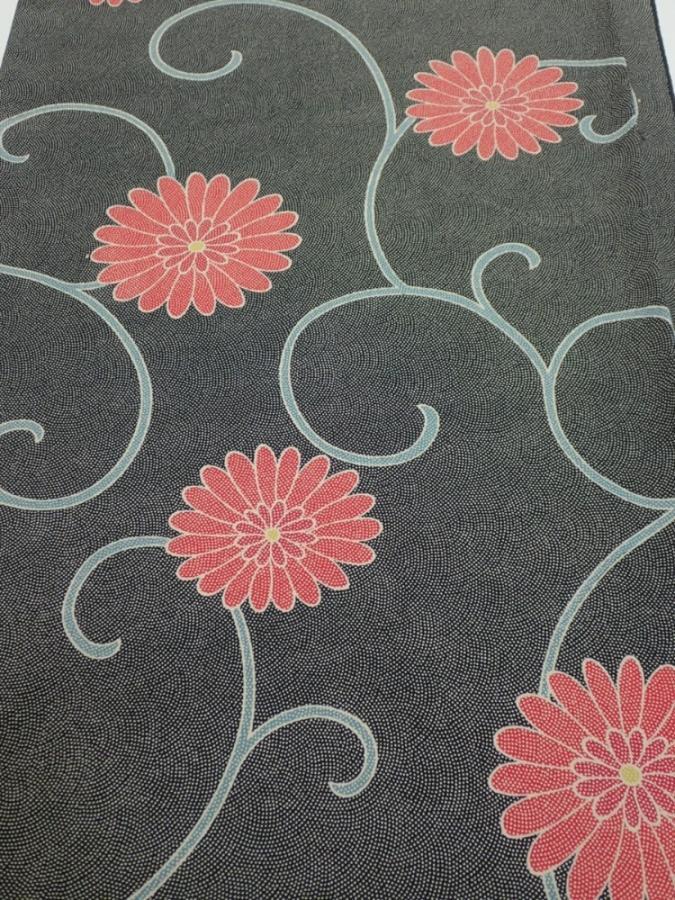 4L01z60 Japanese Kimono Silk FABRIC Chrysanthemum Black 47.2x14.6