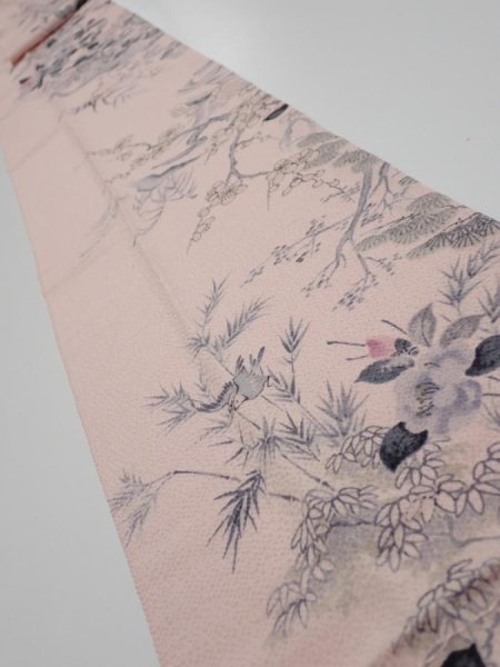 3R09z60 Japanese Kimono Crepe Silk FABRIC Flowers Light pink 83.5x7.5