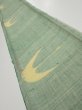 3R08z40 Japanese Kimono Silk TSUMUGI FABRIC Flying crane Light green 53.1x7.5