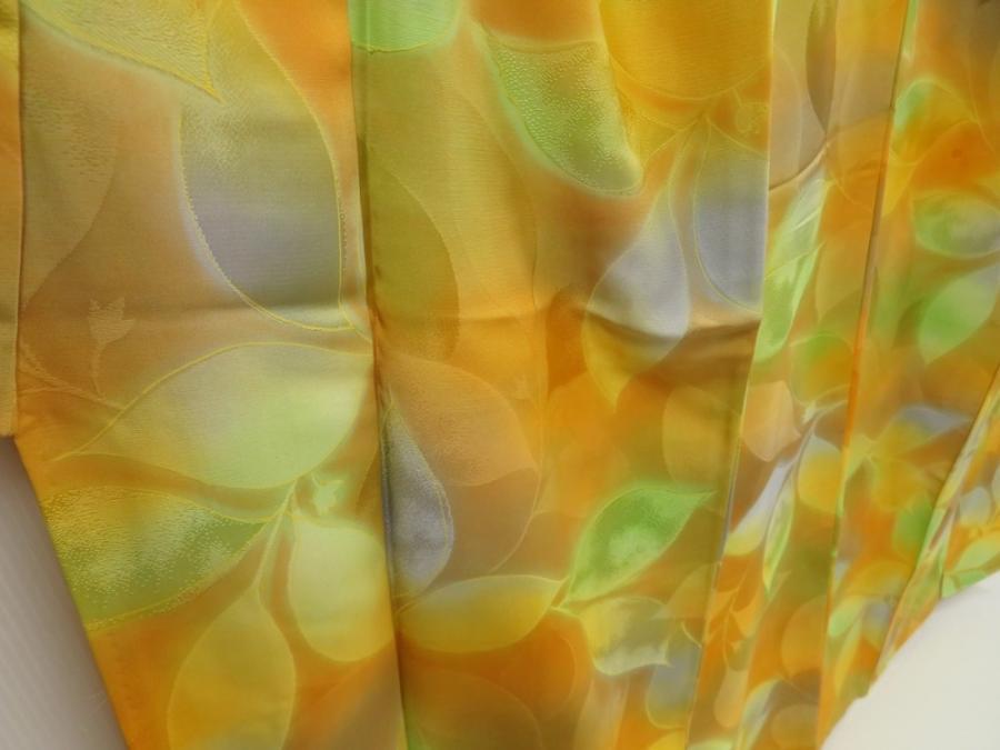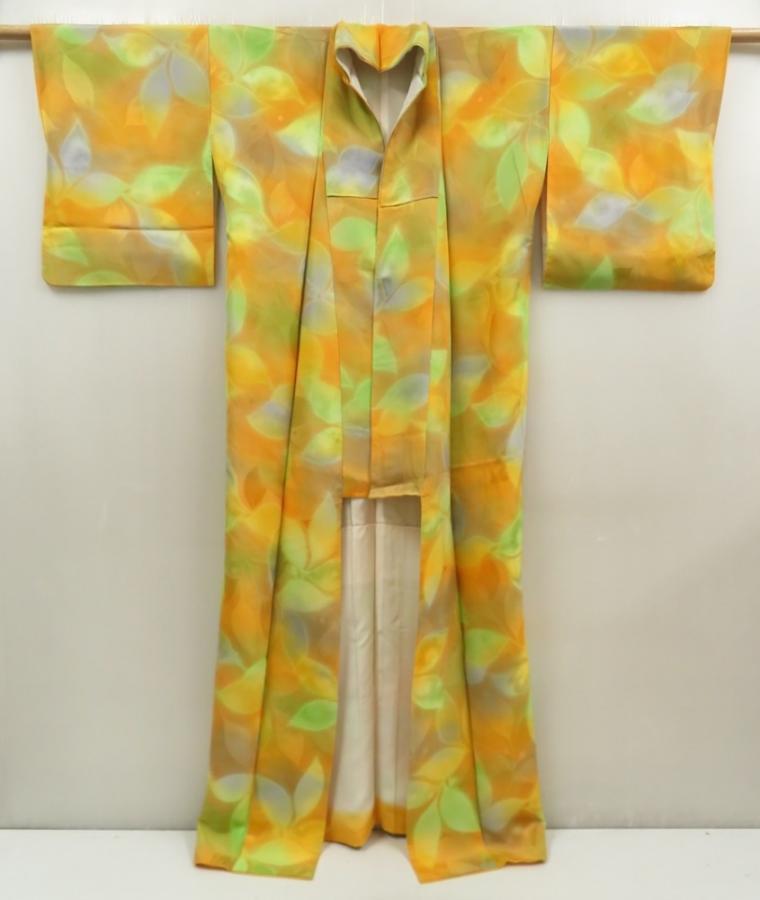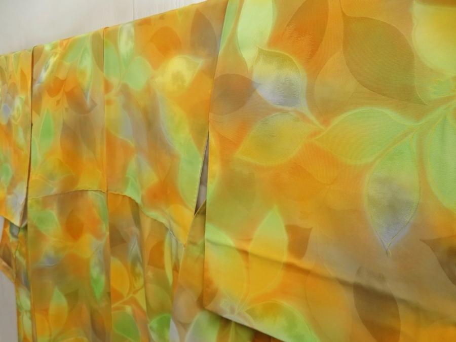 5710T04z880 Japanese Kimono Silk KOMON Leaf Light orange