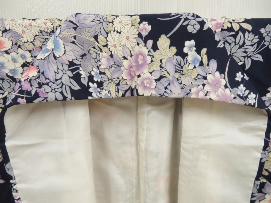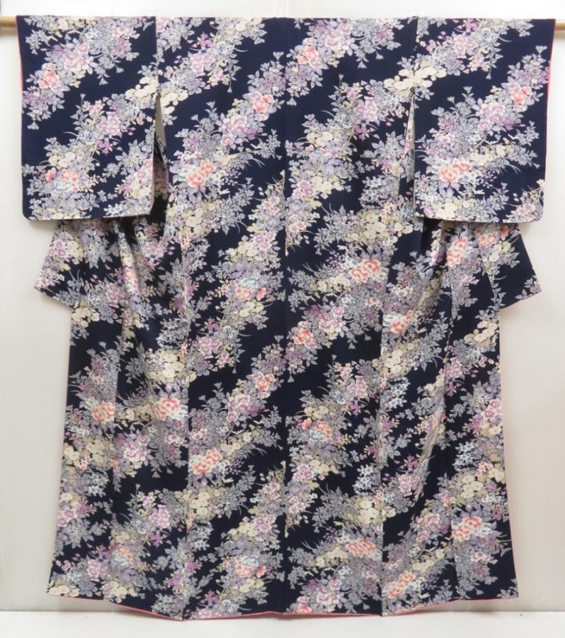 5710T06z910 Japanese Kimono Silk KOMON Flowers Dark navy