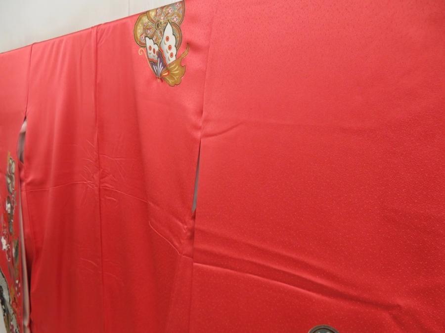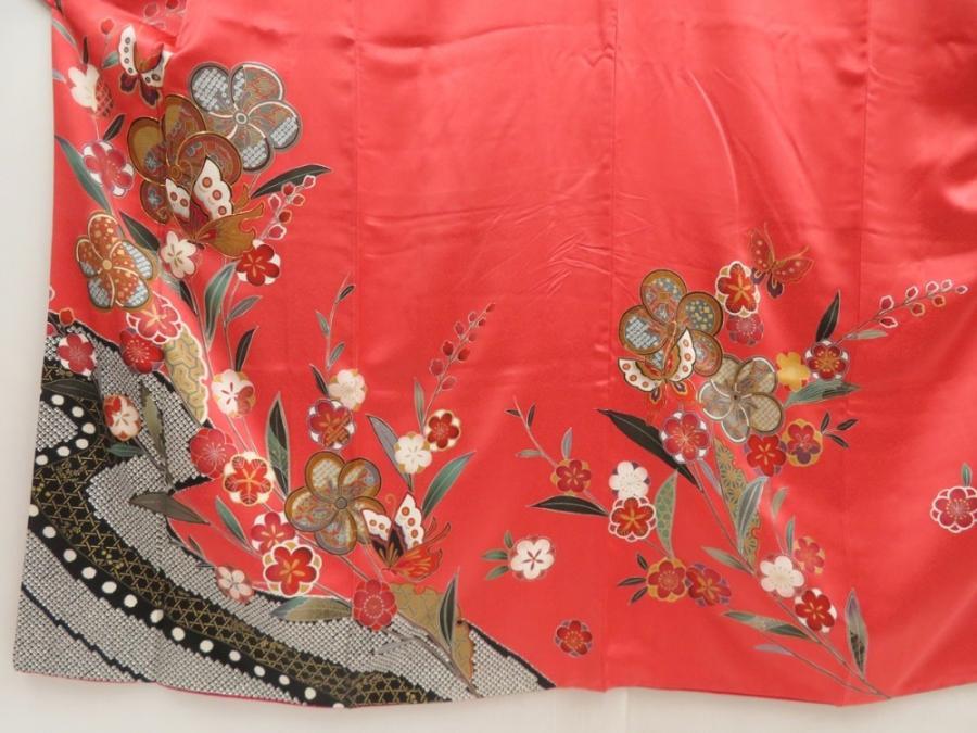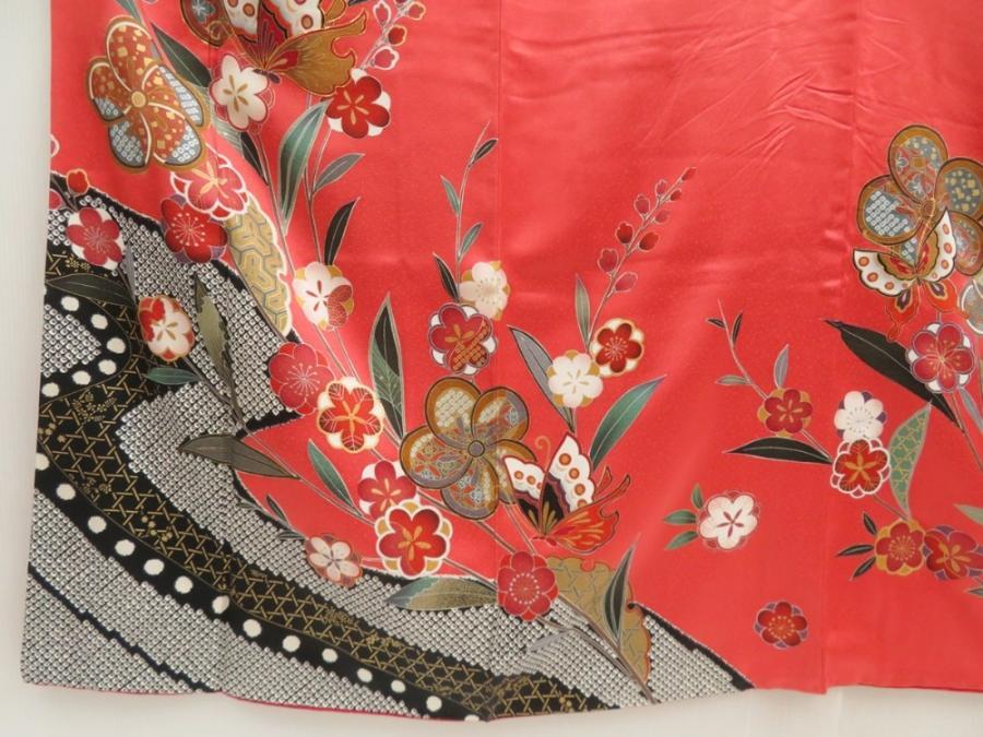 5710T09z1150 Japanese Kimono Silk FURISODE Butterfly Red-Pink