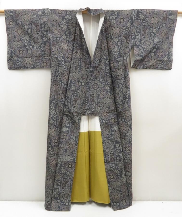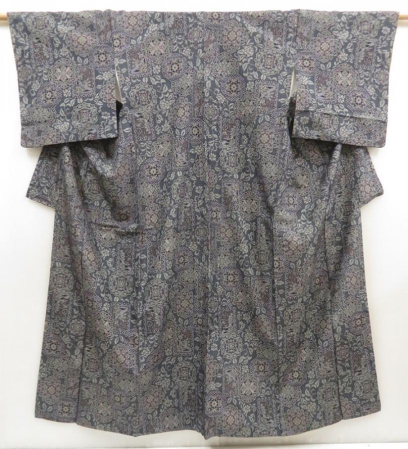 5712T04z740 Vintage Japanese Kimono Silk TSUMUGI Navy-Gray