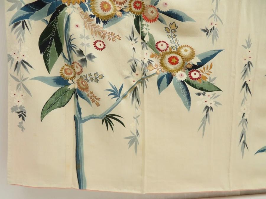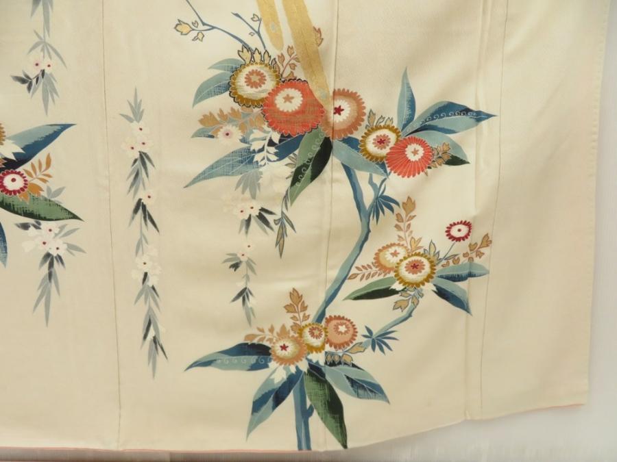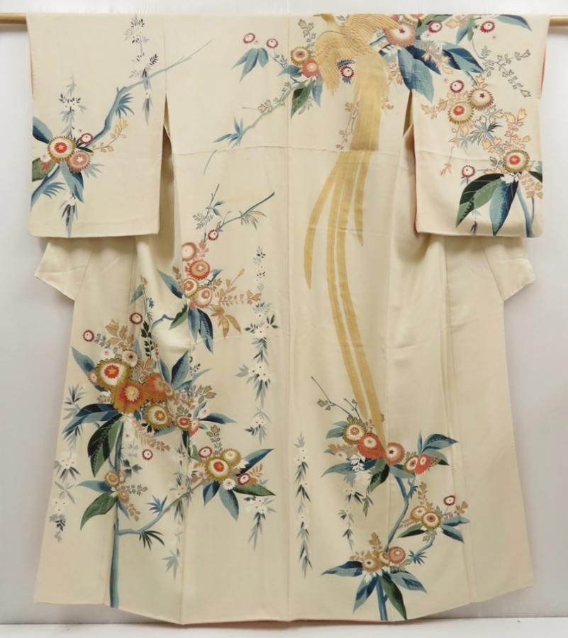 5712T07z970 Vintage Japanese Kimono Silk TSUKESAGE Onagadori Sand beige