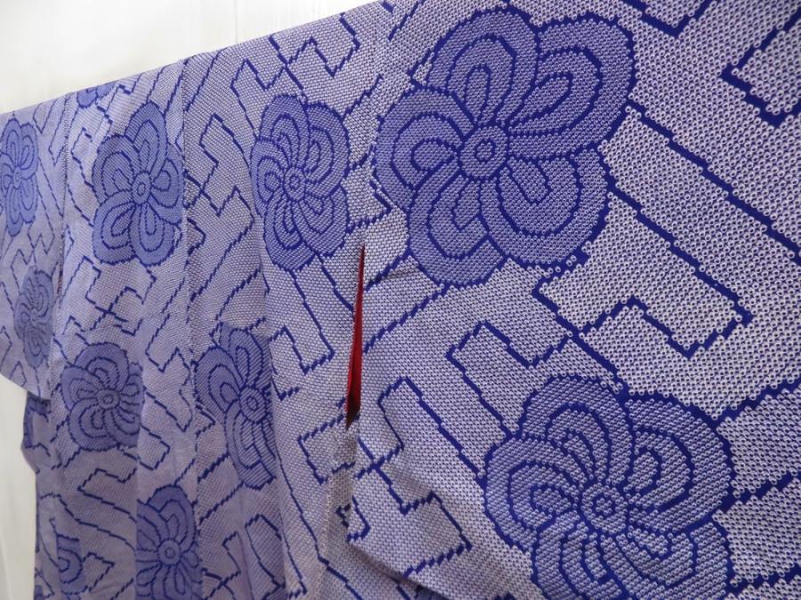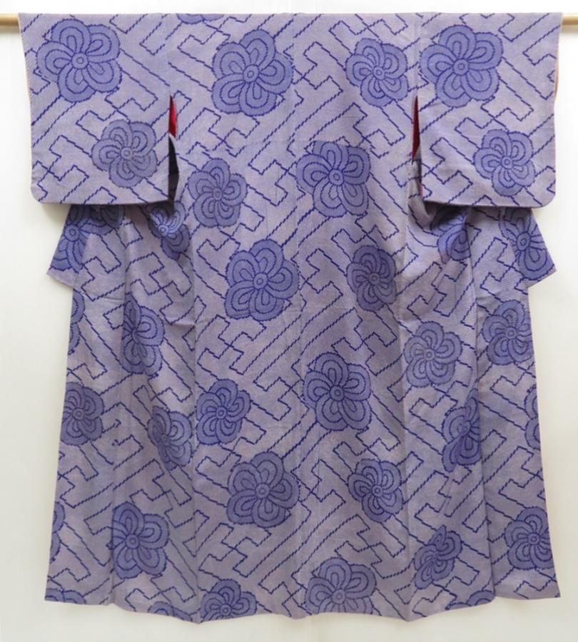 5712T09z570 Vintage Japanese Kimono Silk KOMON Plum blossom Dark lavender