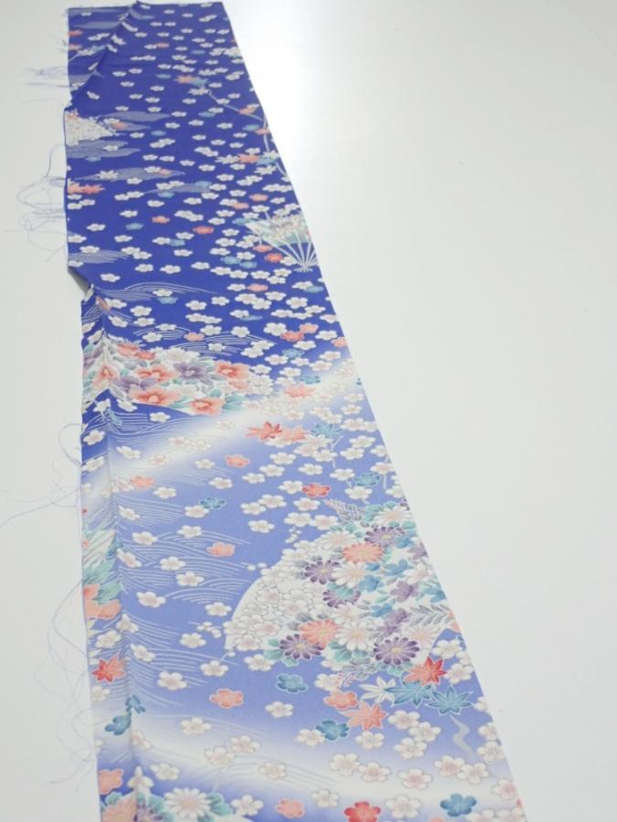 1K07z40 Japanese Kimono Silk FABRIC Flowers Blue 57.5x7.5