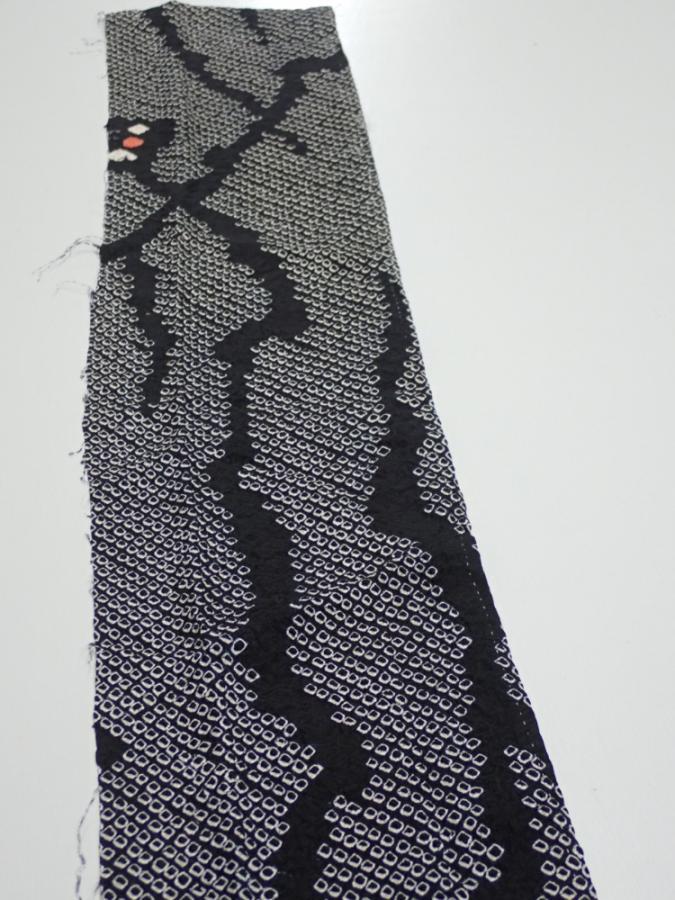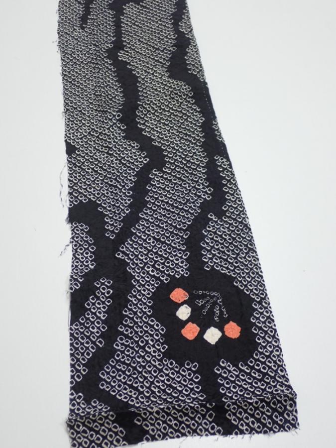1K10z20 Japanese Kimono Silk SHIBORI FABRIC Plum branch Black 38.6x6.9
