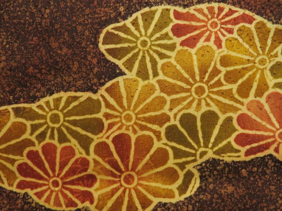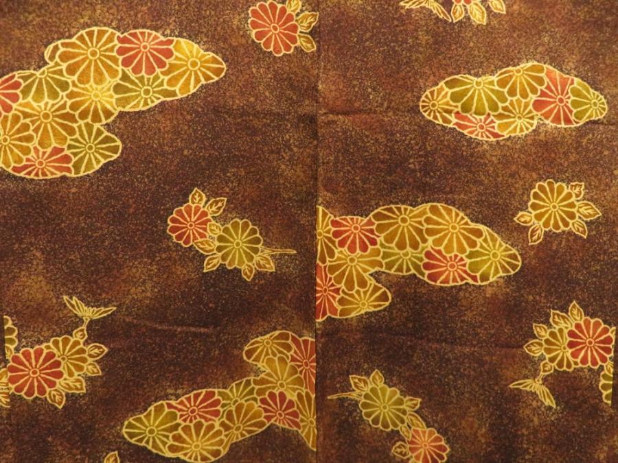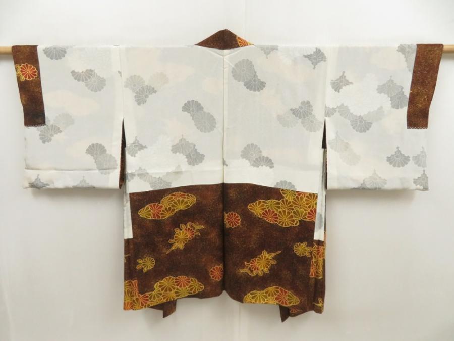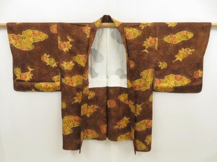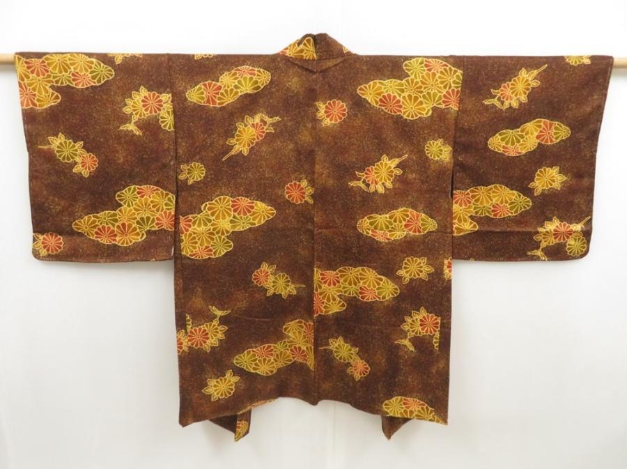 5716T04z530 Japanese Kimono Silk HAORI Chrysanthemum Dark brown