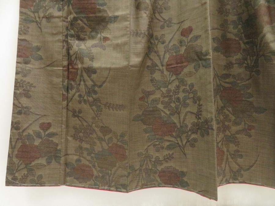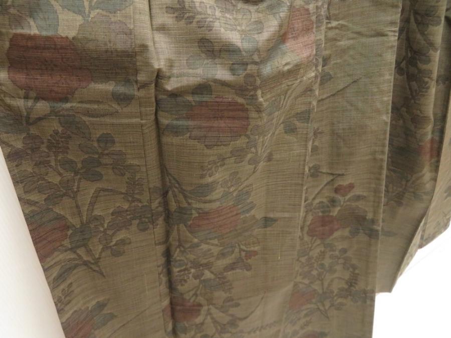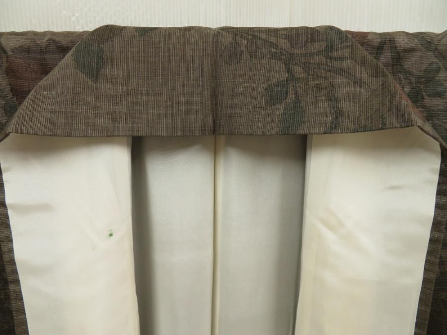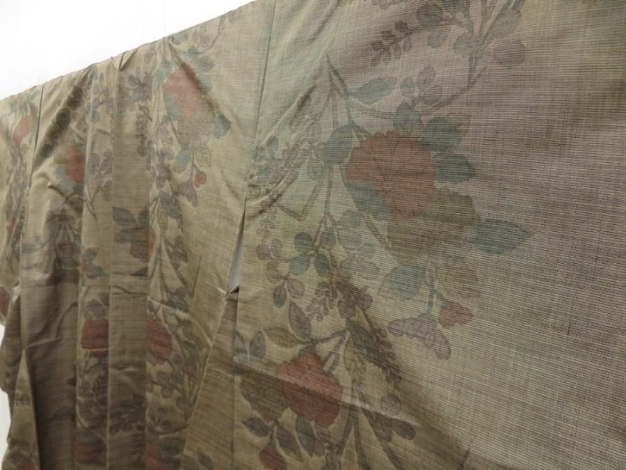 5716T08z720 Vintage Japanese Kimono Silk TSUMUGI Flowers Brown-Gray
