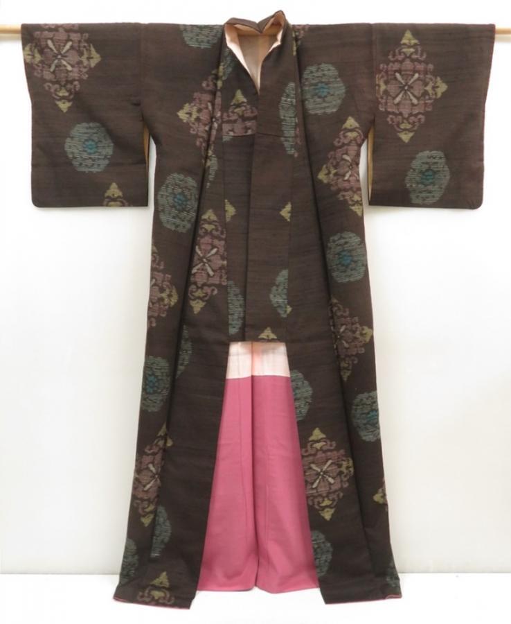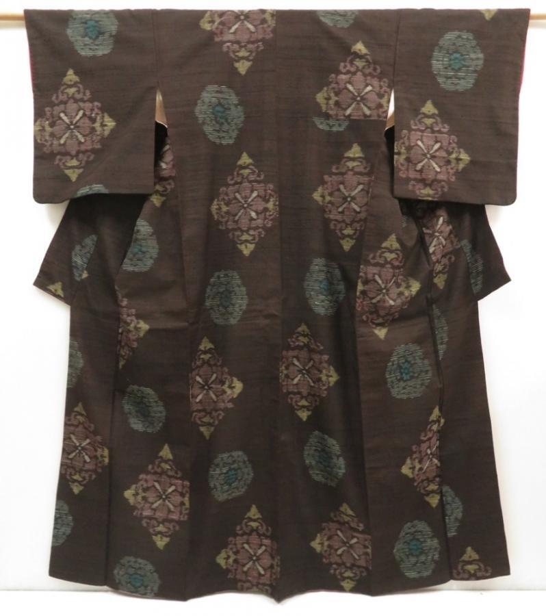 5716T09z810 Vintage Japanese Kimono Silk TSUMUGI Dark brown