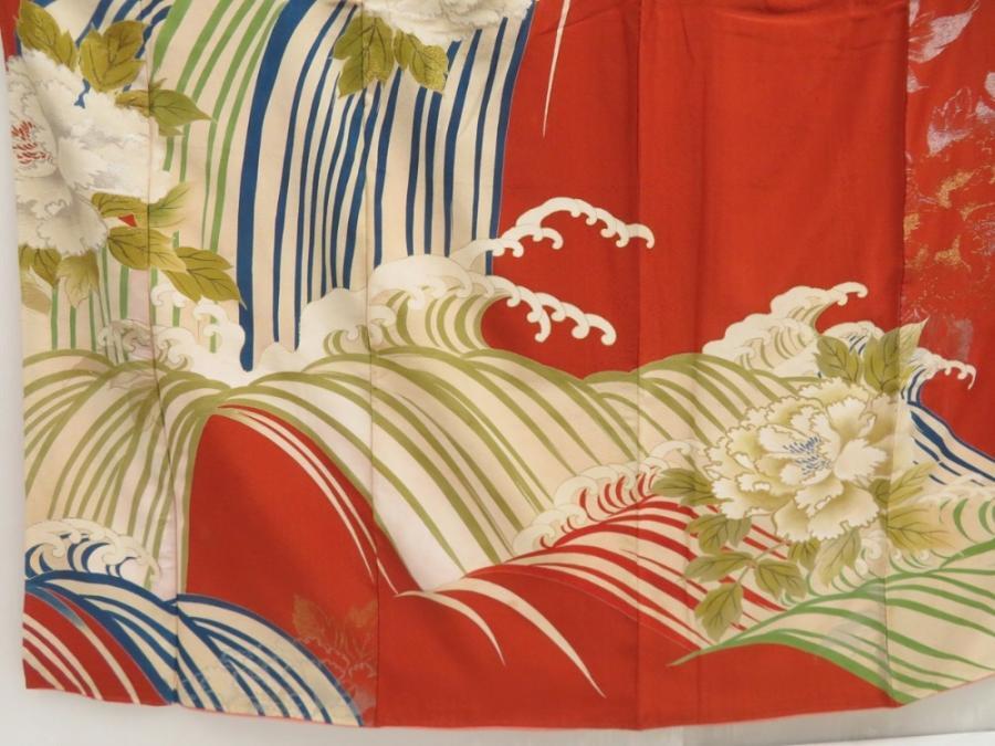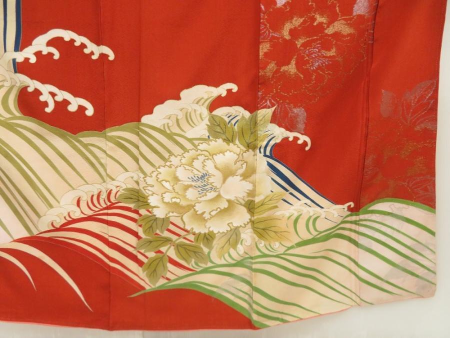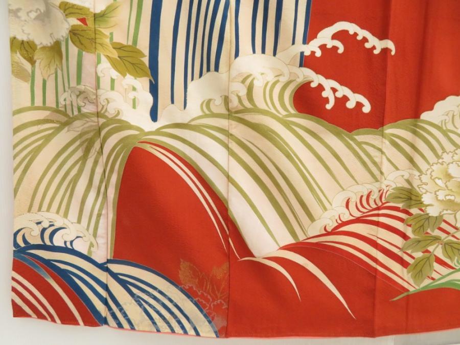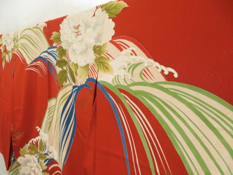 5716T11z760 Antique Japanese Kimono Silk TSUKESAGE Peony Red-Brown