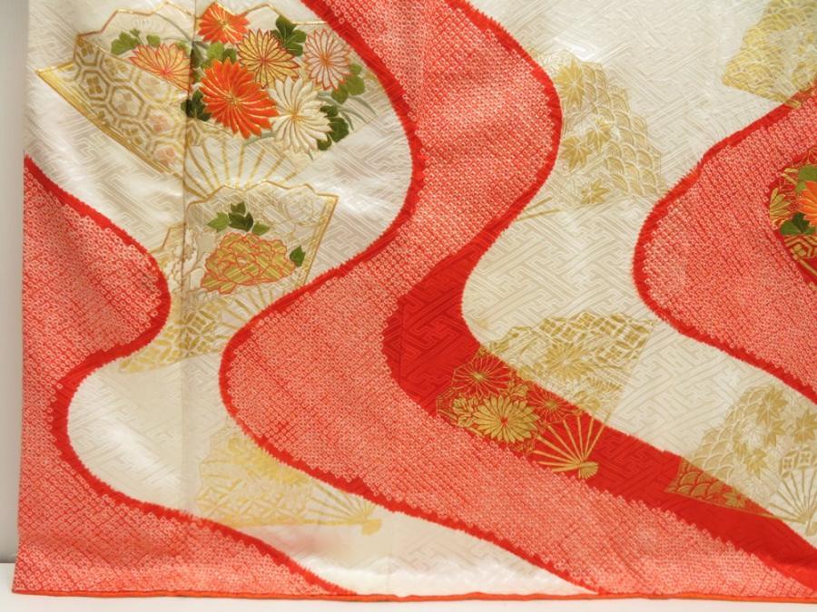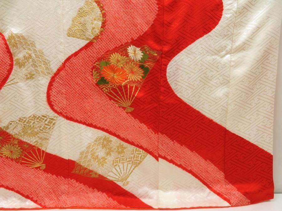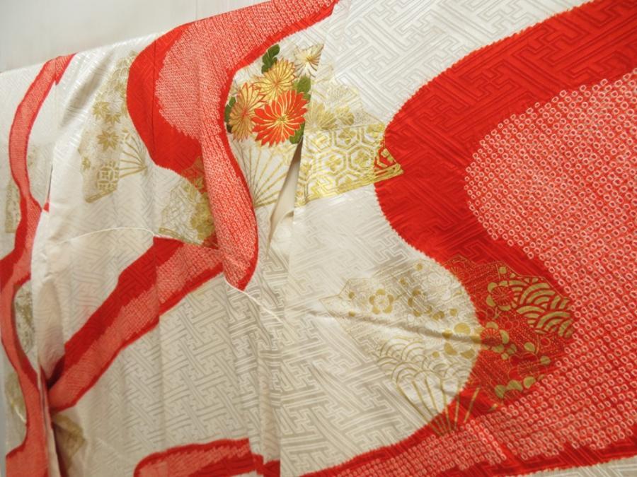 5716T12z1160 Vintage Japanese Kimono Silk FURISODE Folding fan Off-white