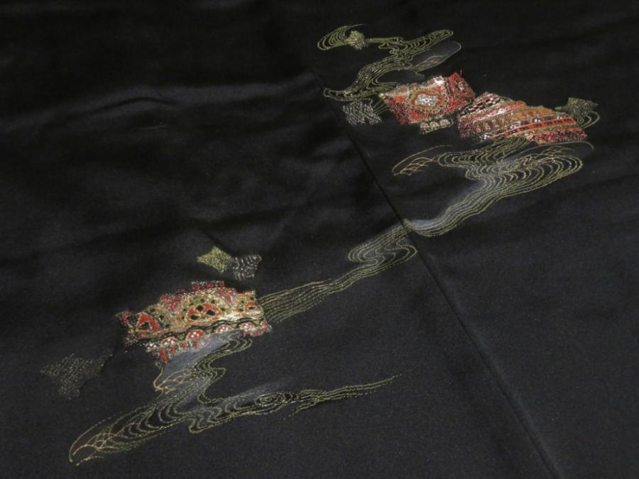 SHG03z15 Japanese Kimono Silk BLACK HAORI 25pcs FREE SHIPPING
