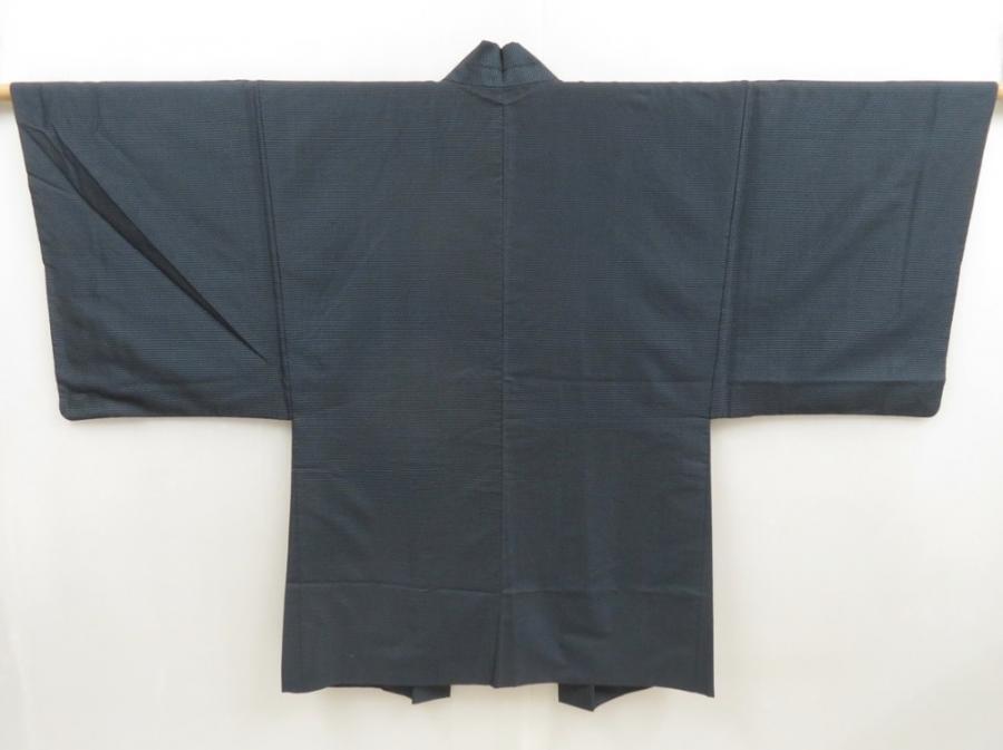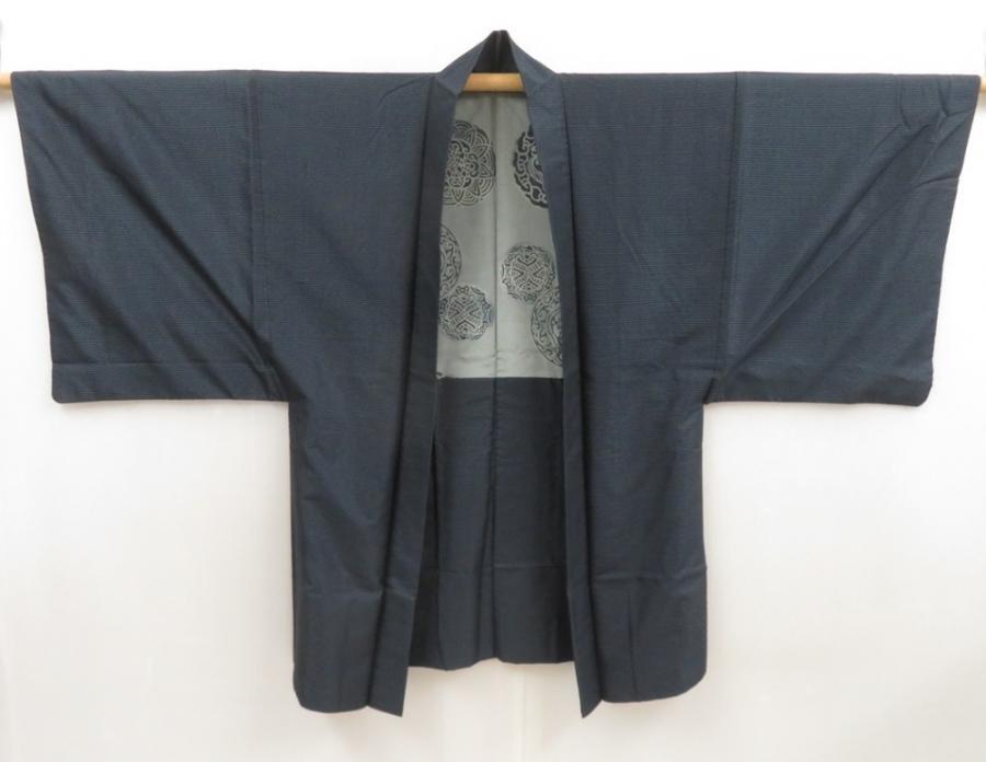 5719T02z510 Vintage Japanese Kimono Silk Men's HAORI Flower Navy-Gray