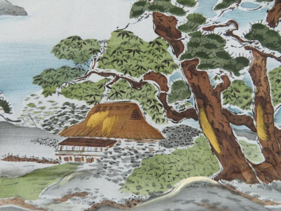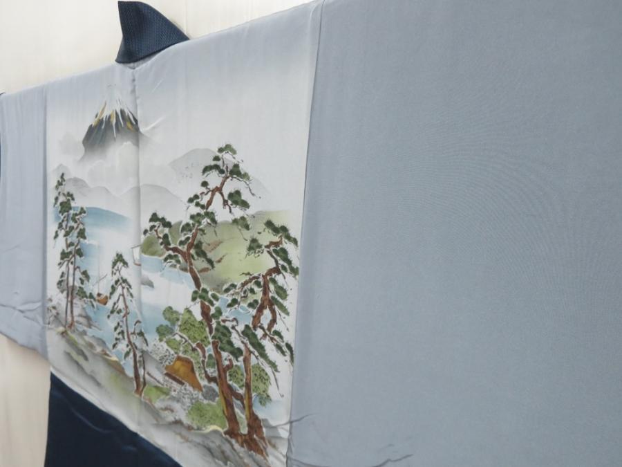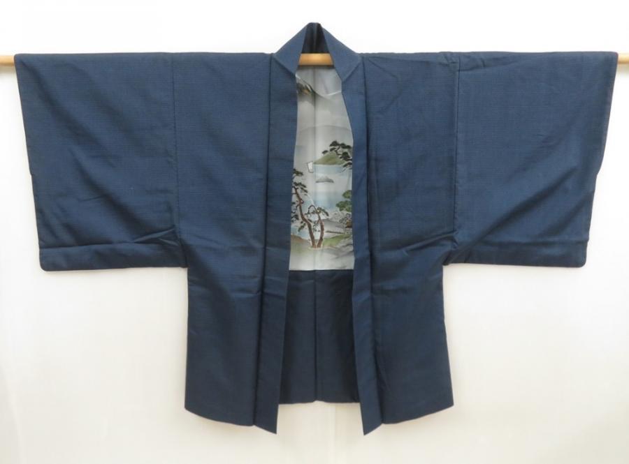 5719T04z600 Vintage Japanese Kimono Silk Men's HAORI Mt.Fuji Dark blue