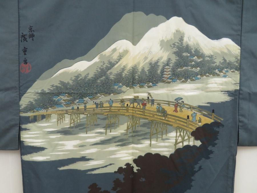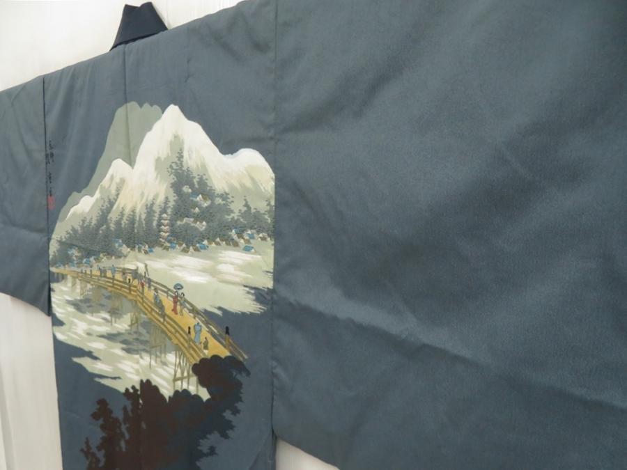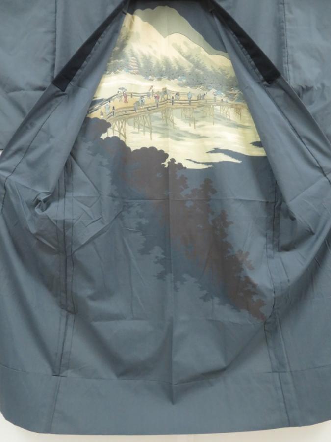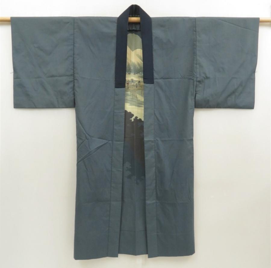 5719T05z400 Vintage Japanese Kimono Synthetic Men's JUBAN Edo era Blue-Gray