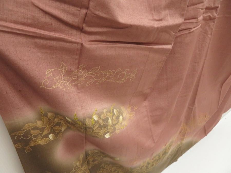5719T11z860 Vintage Japanese Kimono Silk ARTIST WORK TSUMUGI Rosy brown