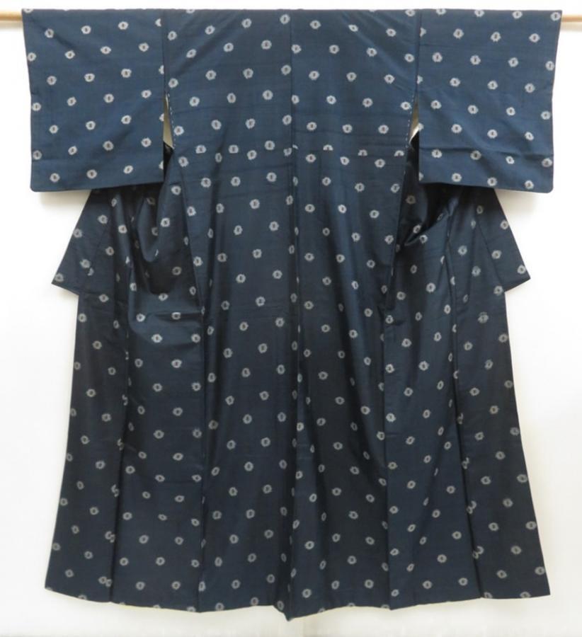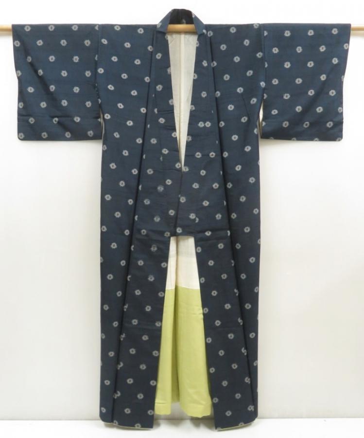 5719T12z480 Vintage Japanese Kimono Silk MEISEN KOMON Dark green-gray