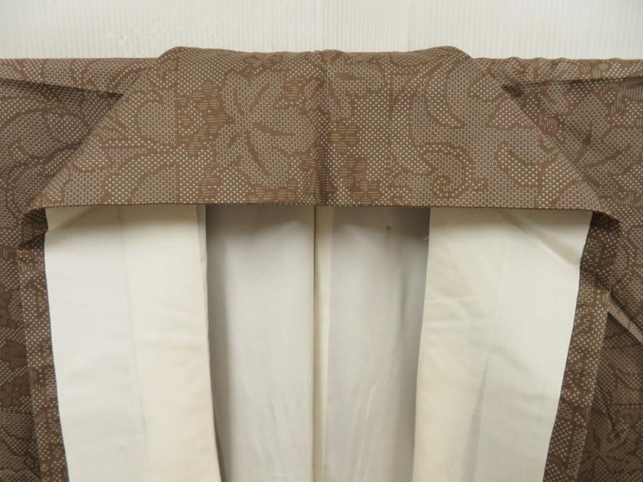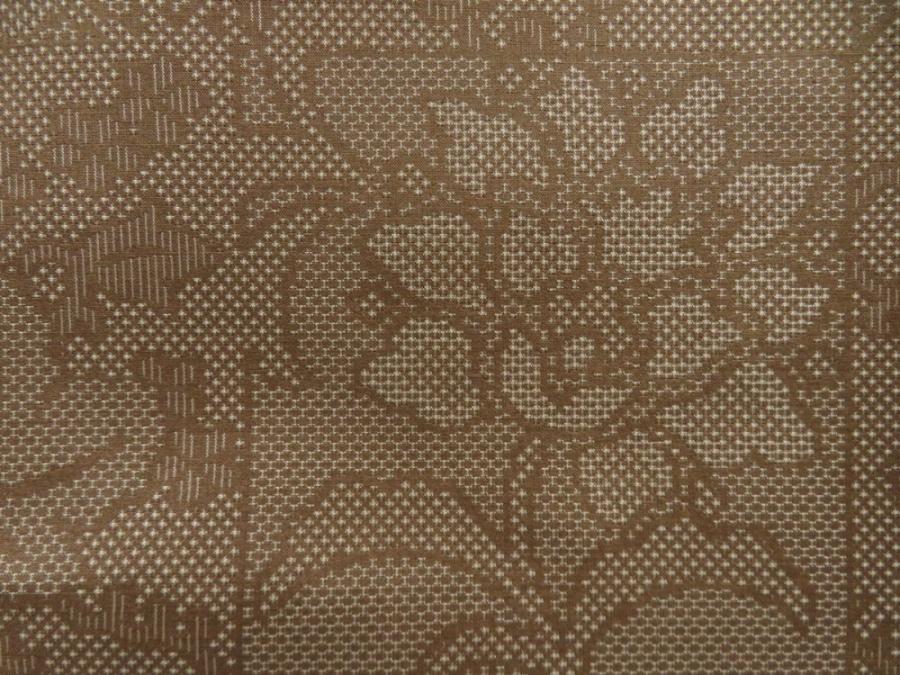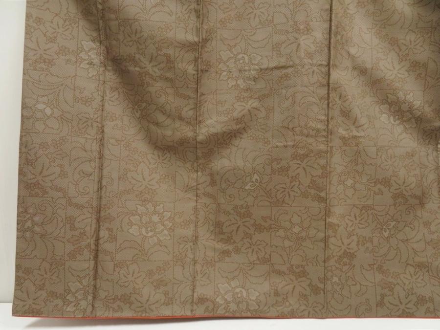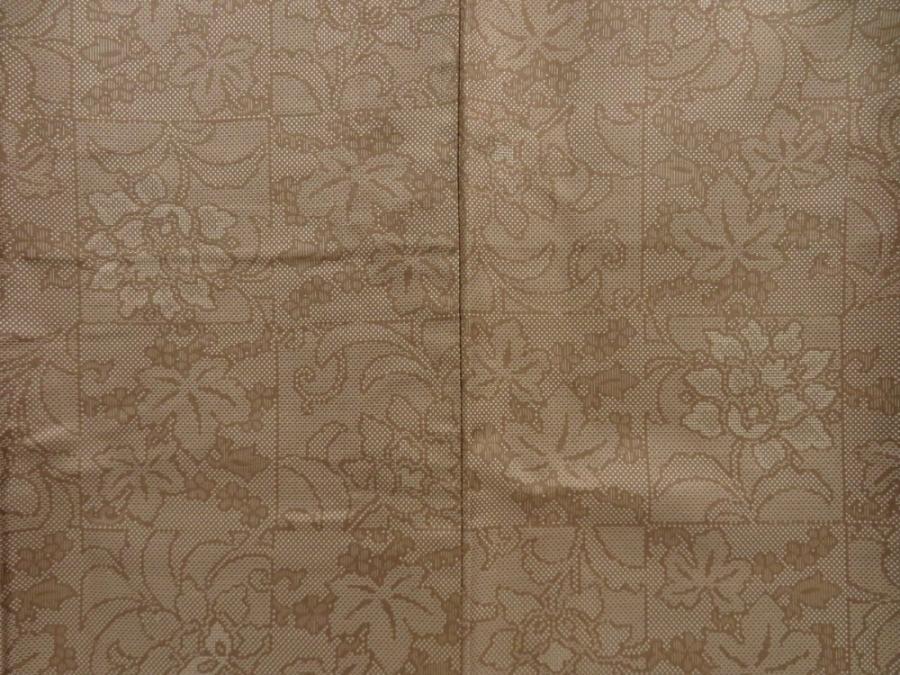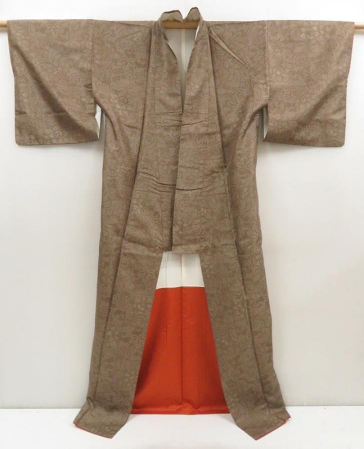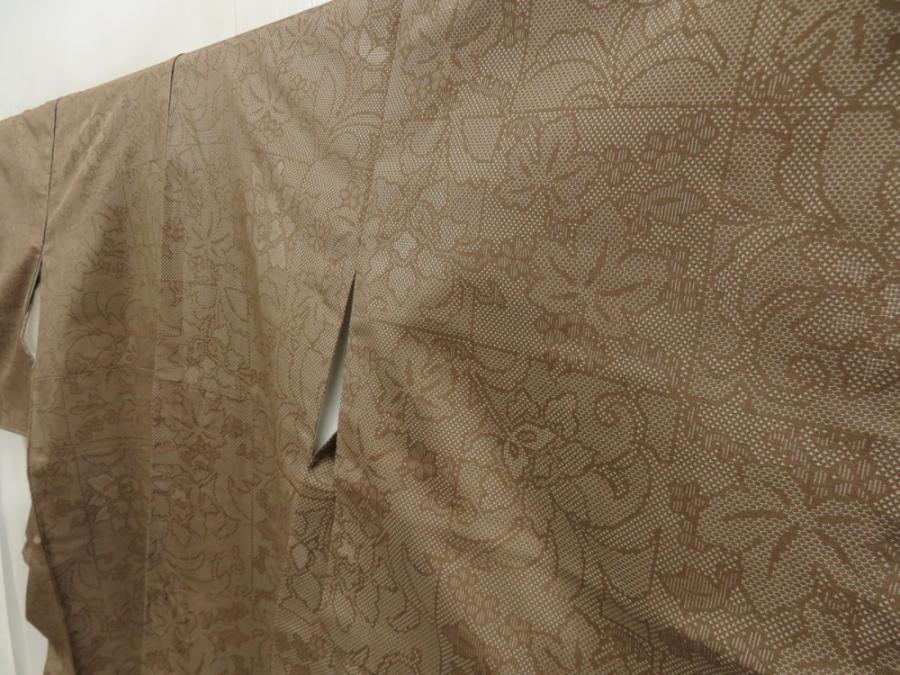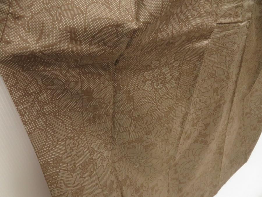 5719T13z770 Vintage Japanese Kimono Silk TSUMUGI Flowers Olive-Brown