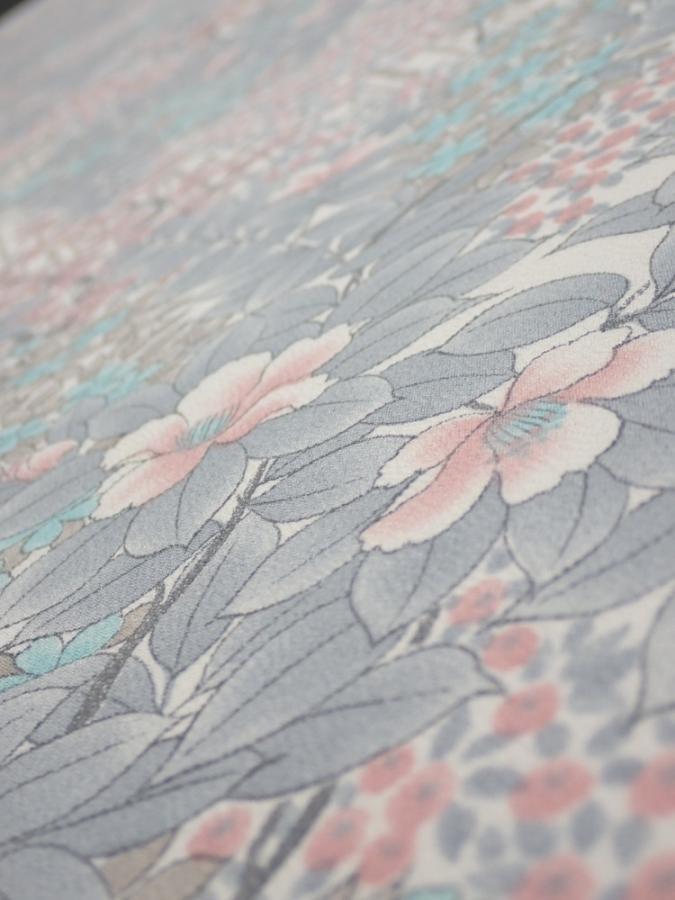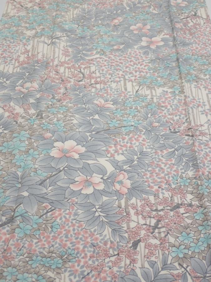 1K06z90 Japanese Kimono Silk FABRIC Flowers Off-white 63.8x14.8