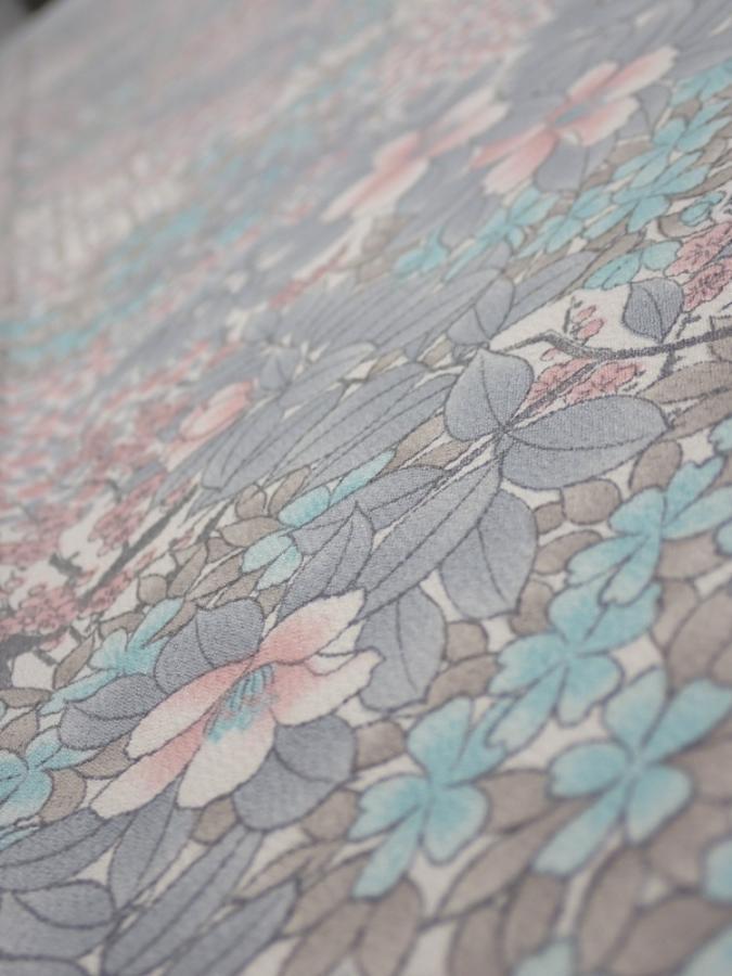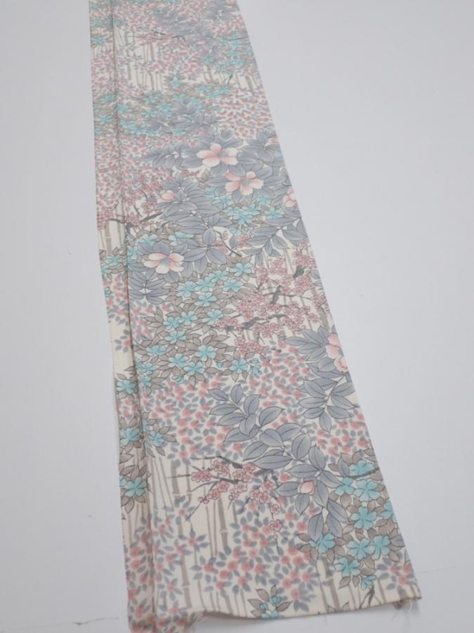 1K07z40 Japanese Kimono Silk FABRIC Flowers Off-white 59.1x7.3