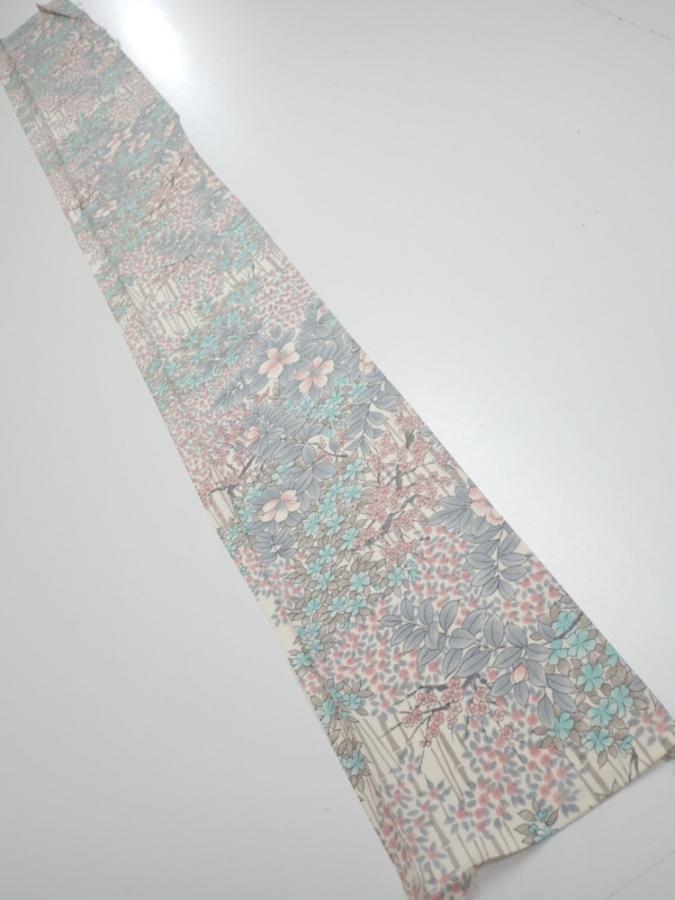 1K08z40 Japanese Kimono Silk FABRIC Flowers Off-white 59.4x7.3