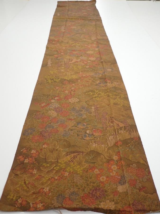 1K06z100 Japanese Kimono Silk FABRIC Garden Brown 72.0x14.6