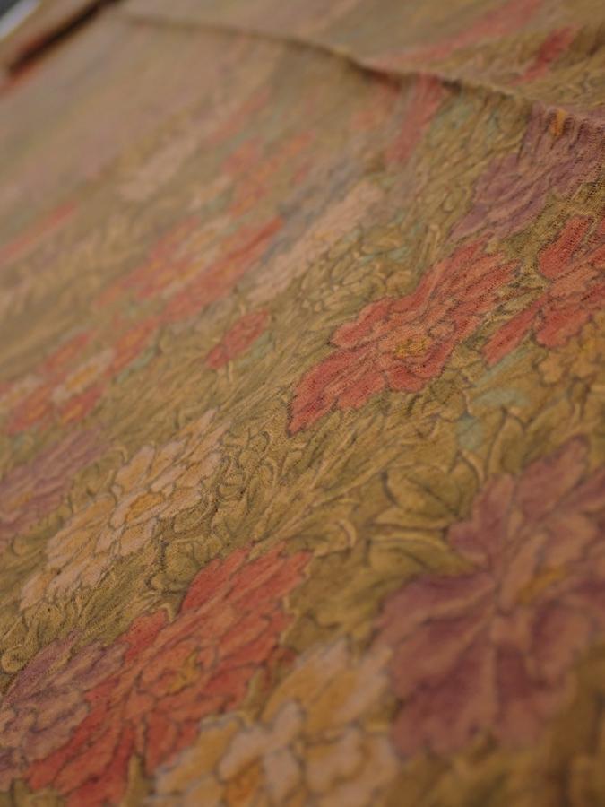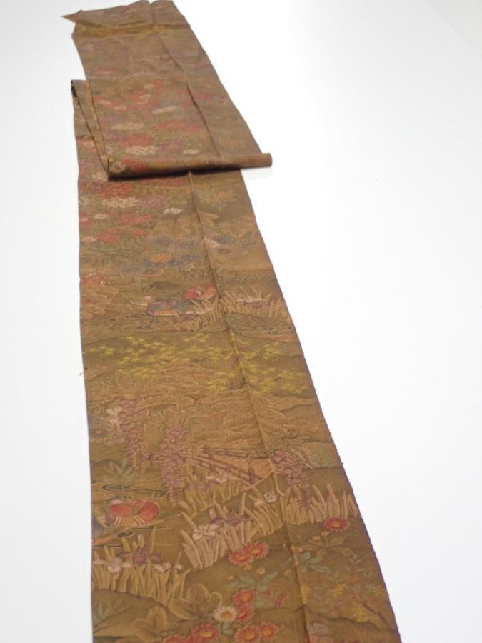 1K09z60 Japanese Kimono Silk FABRIC Garden Brown 89.0x6.7