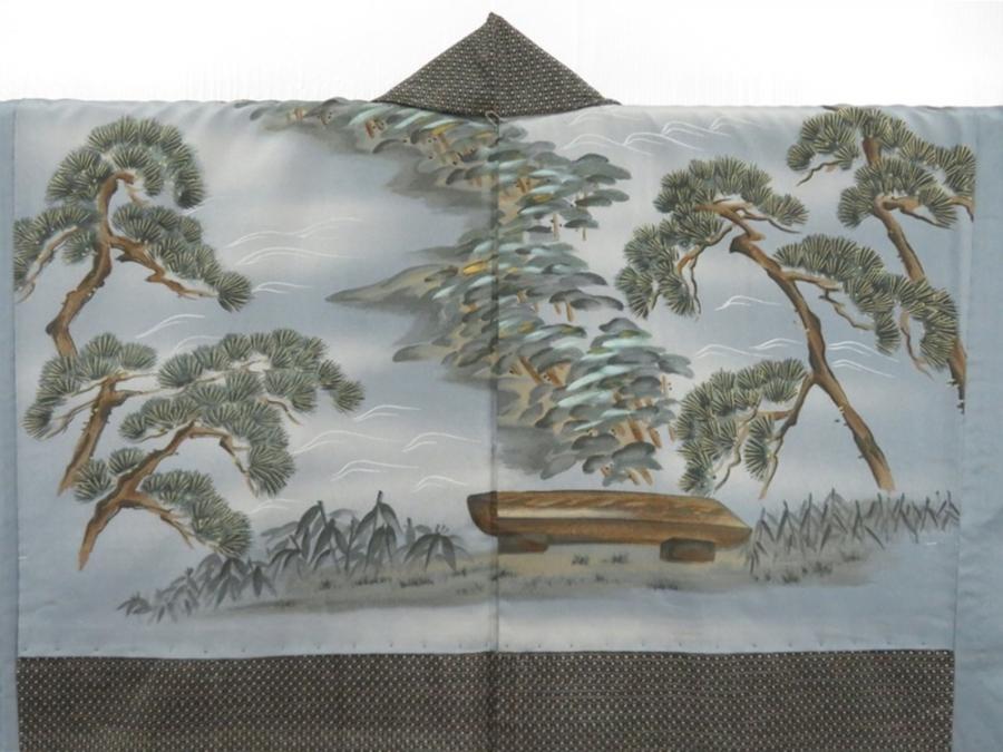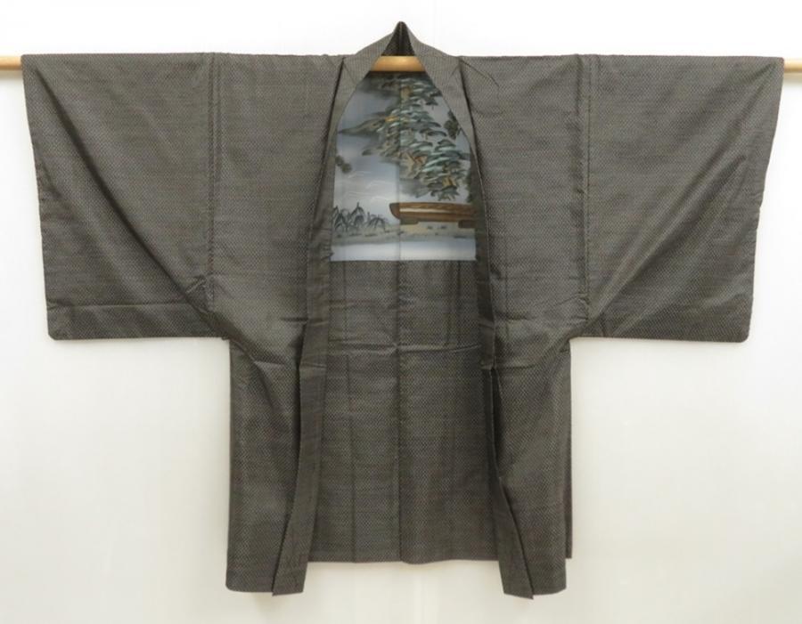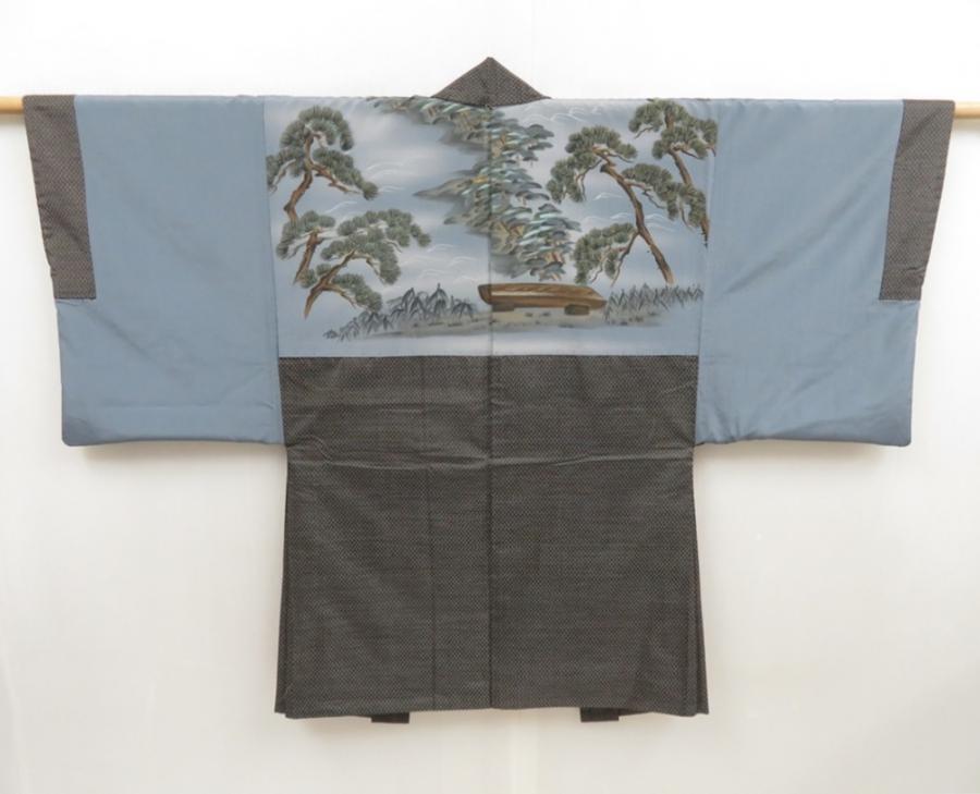 5722T02z500 Vintage Japanese Kimono Silk Men's HAORI Pine Brown-Gray