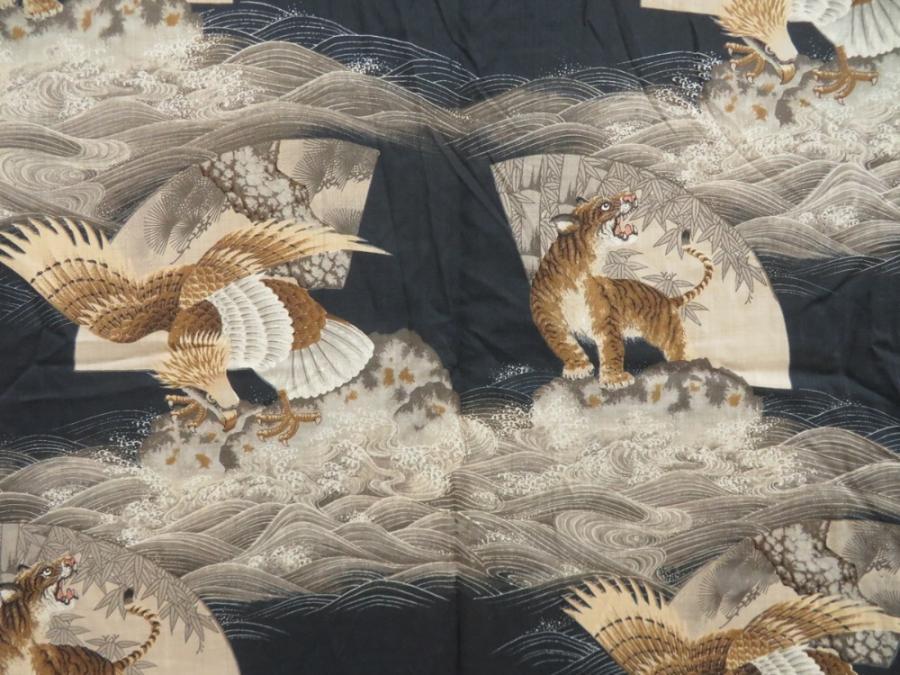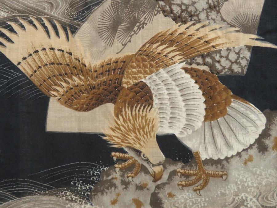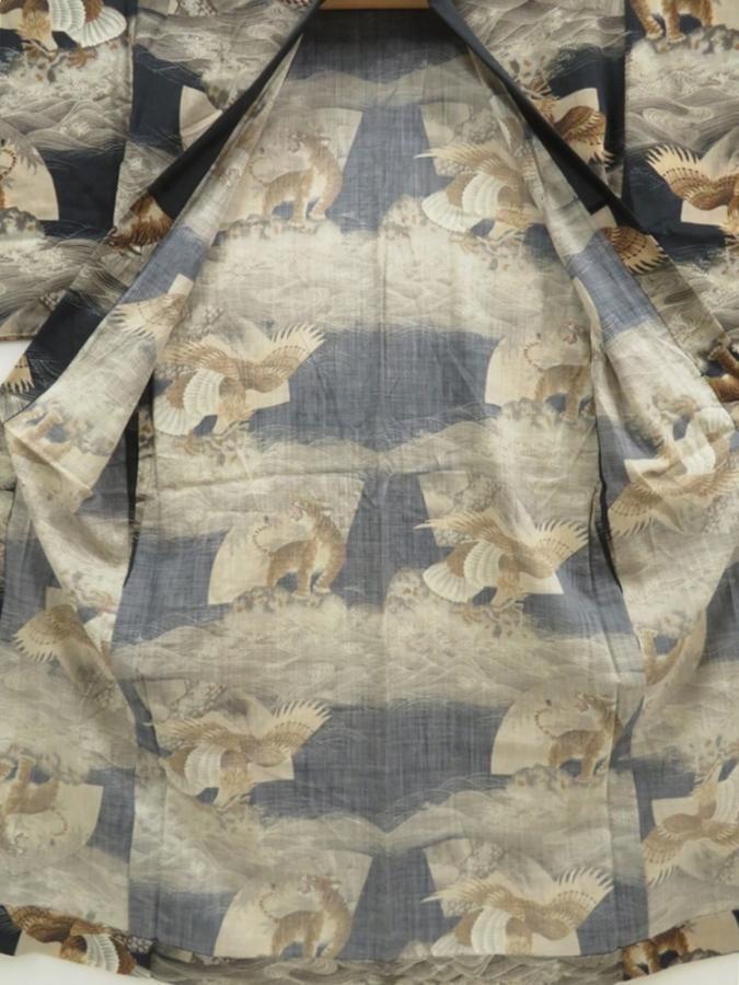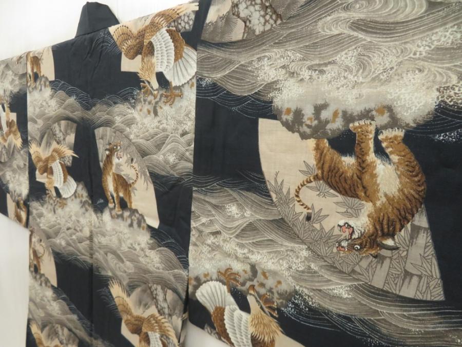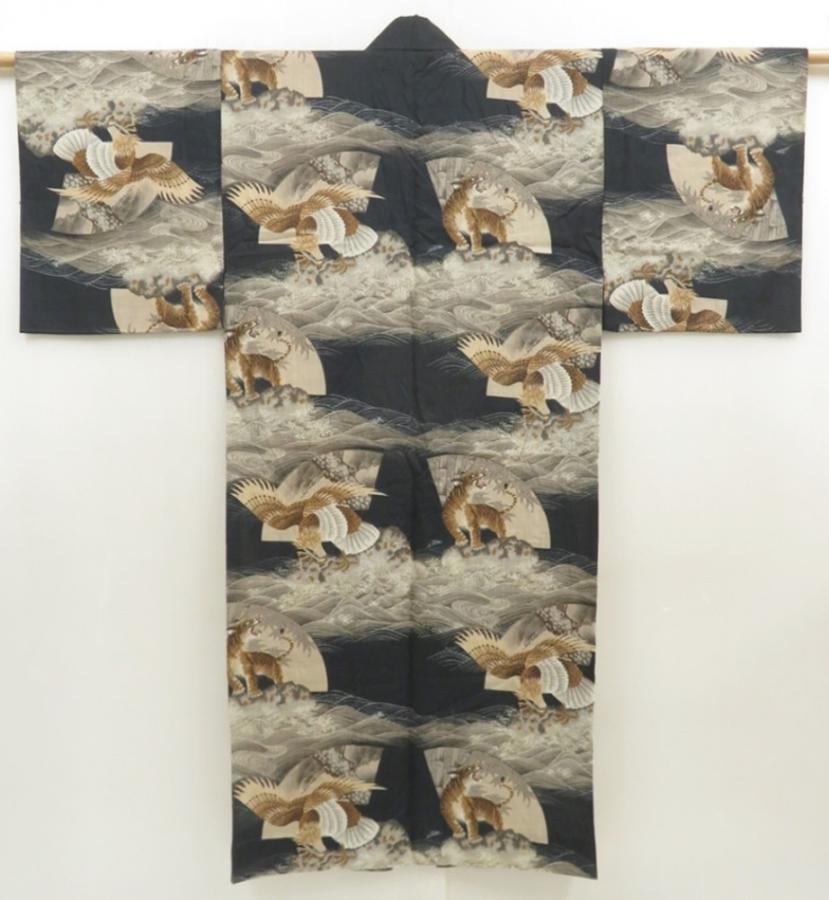 5722T04z510 Vintage Japanese Kimono Muslin Men's JUBAN Hawk Black