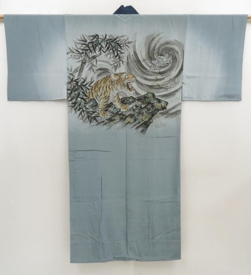 5722T06z470 Vintage Japanese Kimono Silk Men's JUBAN Tiger Blue-Gray
