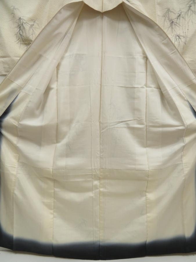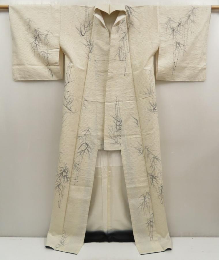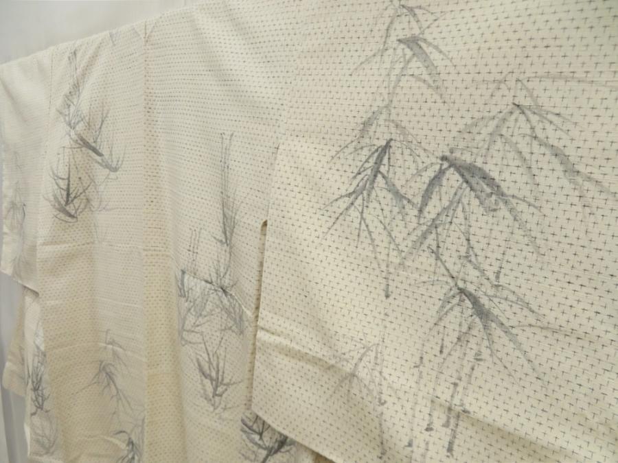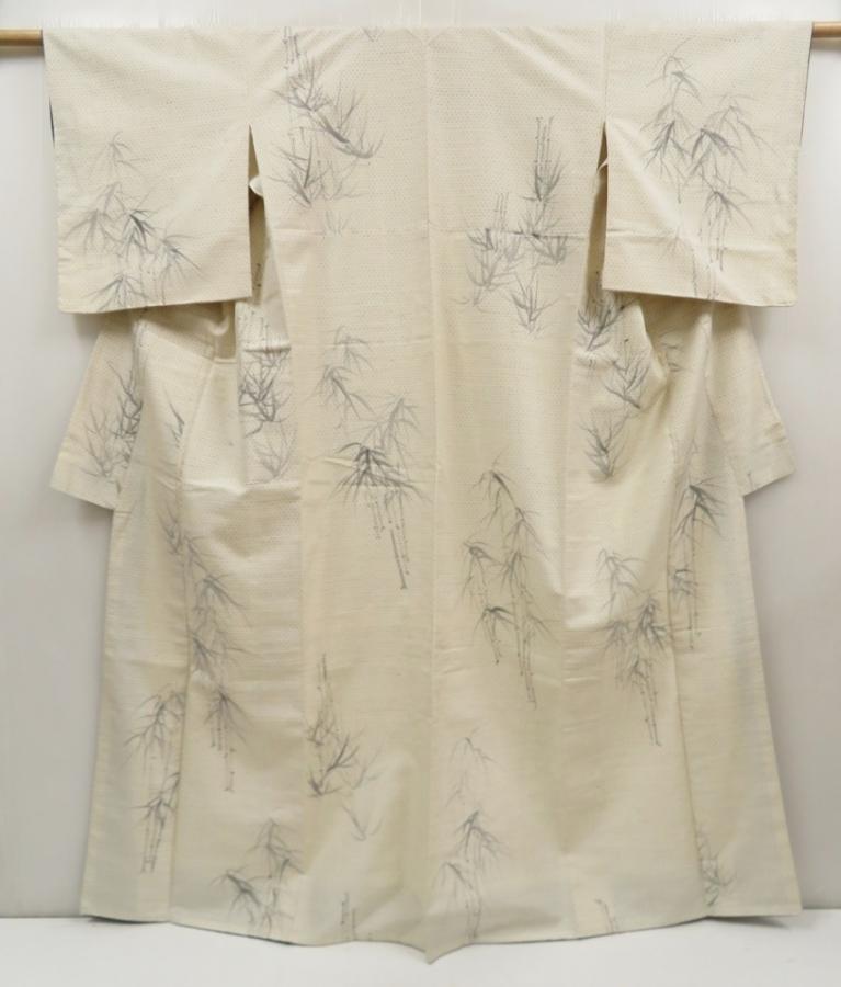 5722T08z800 Vintage Japanese Kimono Silk TSUMUGI Bamboo Off-white