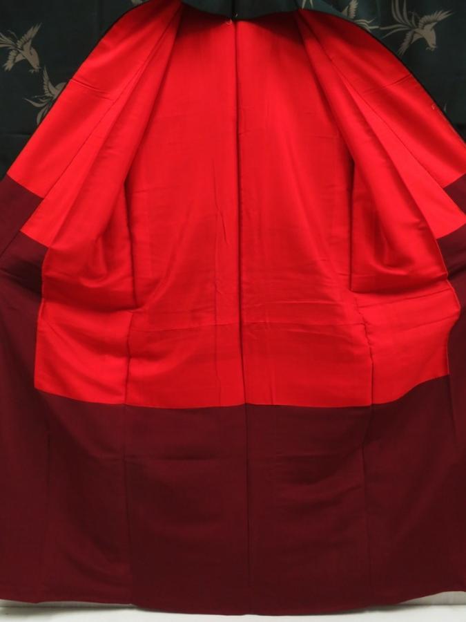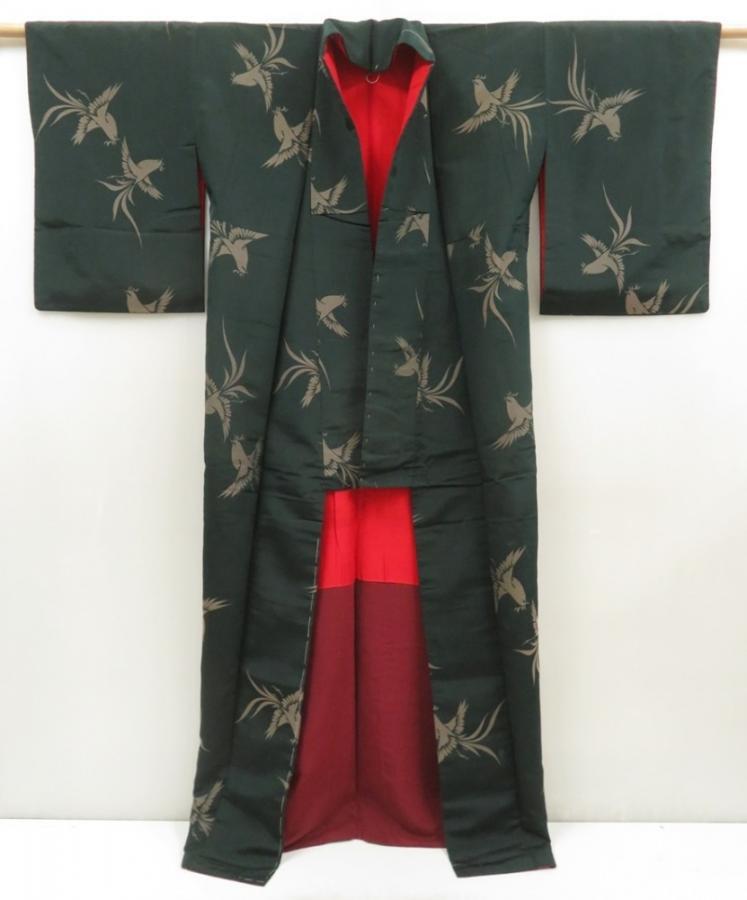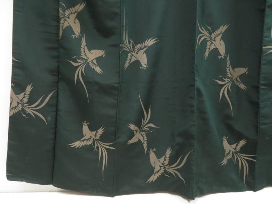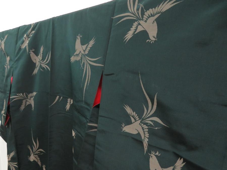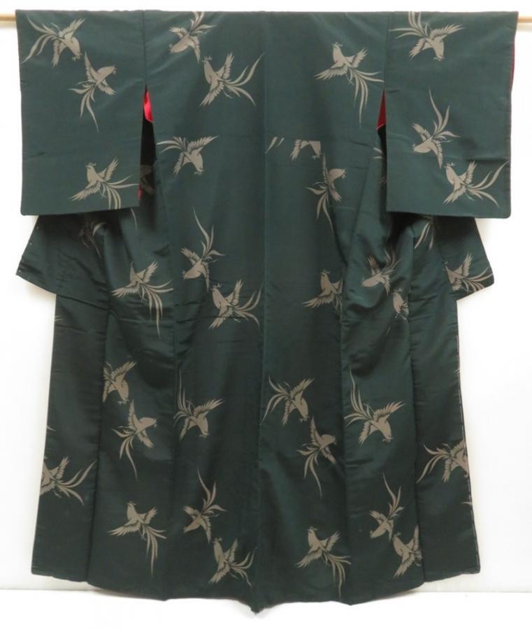 5722T11z870 Vintage Japanese Kimono Silk OMESHI KOMON Bird Dull green