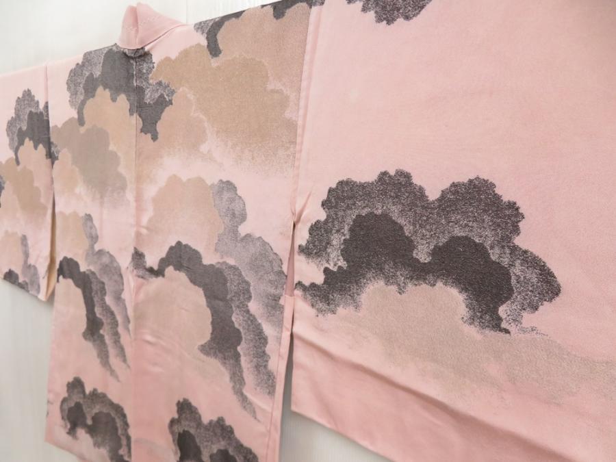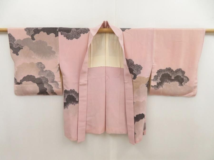 5726T02z570 Vintage Japanese Kimono Silk HAORI Cloud Pink