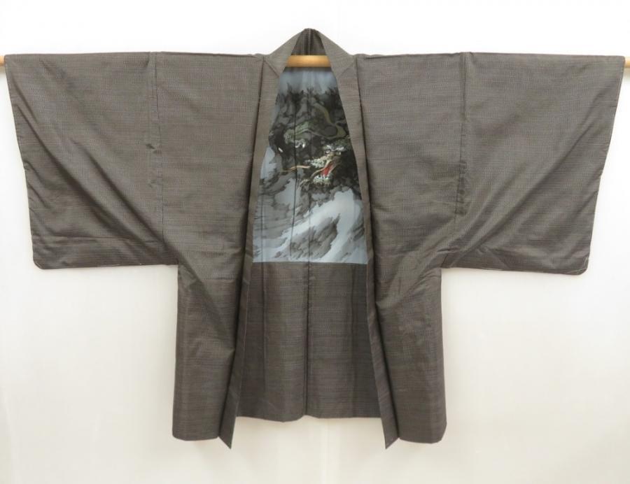 5726T05z500 Vintage Japanese Kimono Silk Men's OSHIMA HAORI Dragon