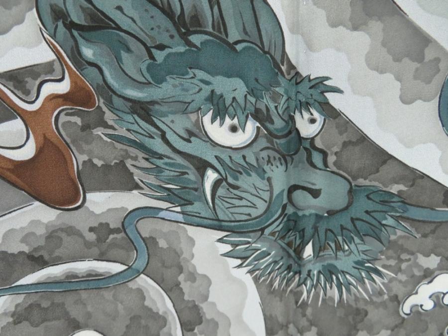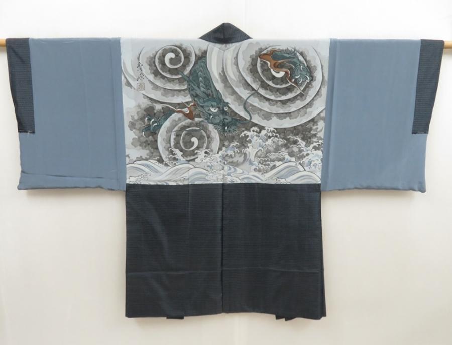 5726T06z470 Vintage Japanese Kimono Silk Men's OSHIMA HAORI Dragon