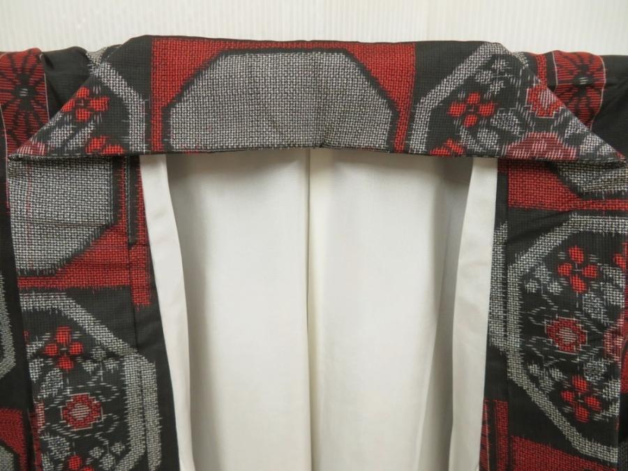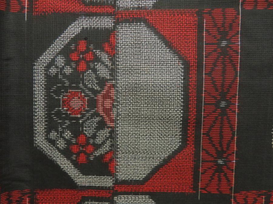 5726T09z700 Vintage Japanese Kimono Silk OSHIMA TSUMUGI Flower Black