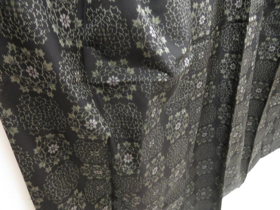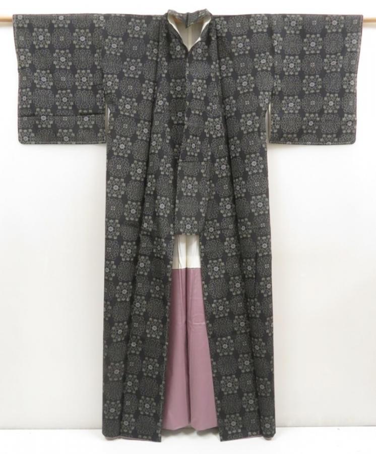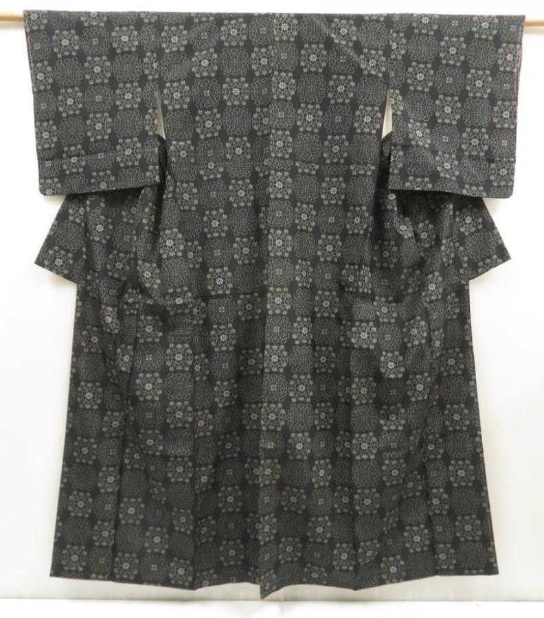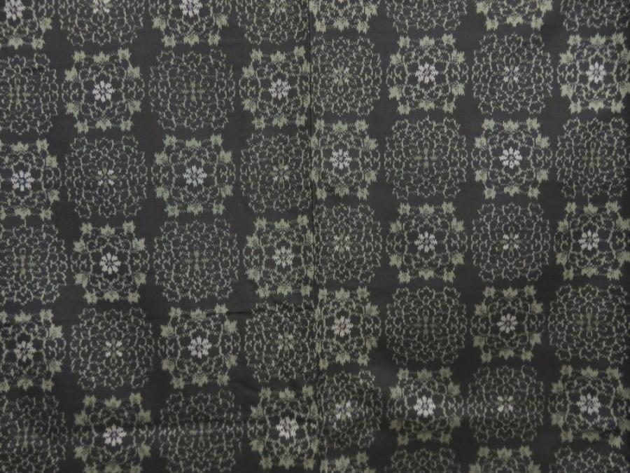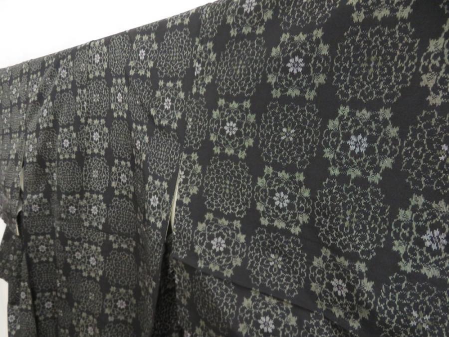 5726T10z670 Vintage Japanese Kimono Silk OSHIMA TSUMUGI Flower Black