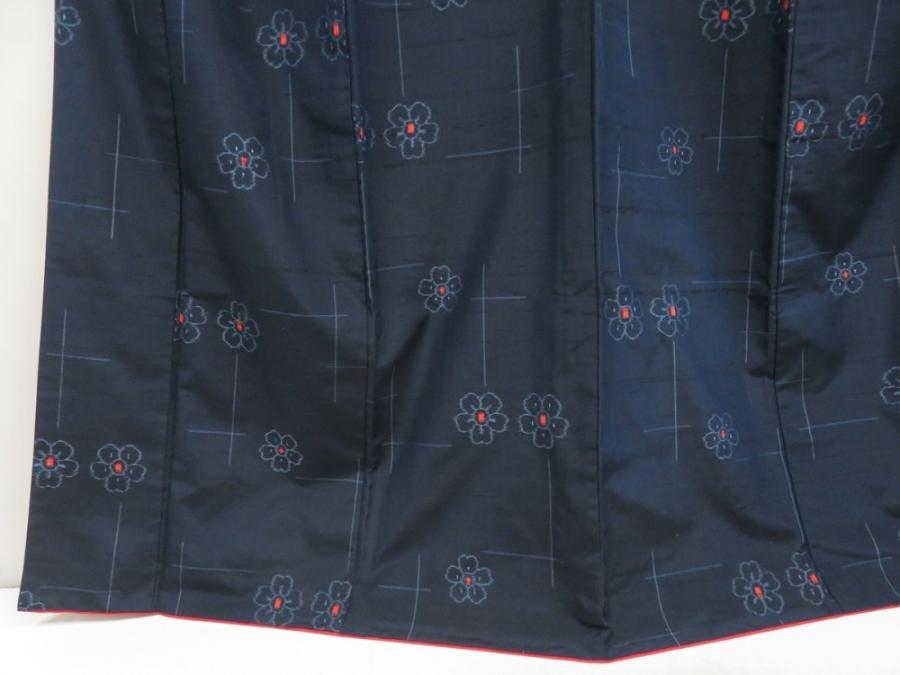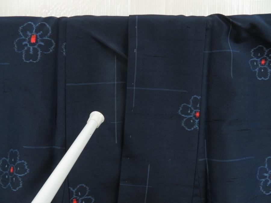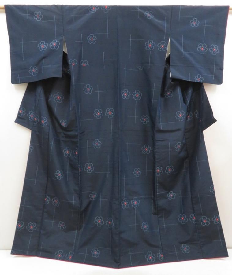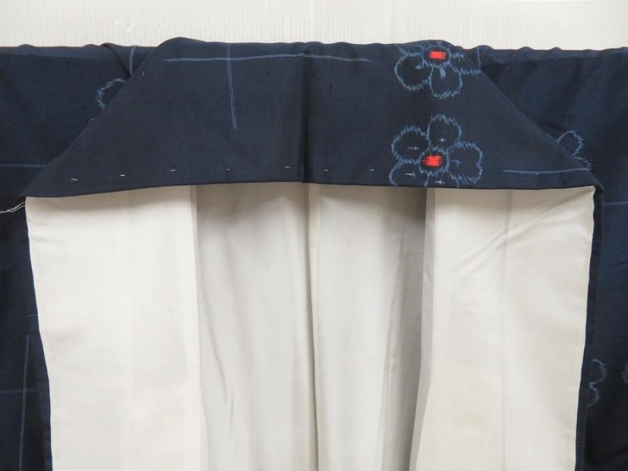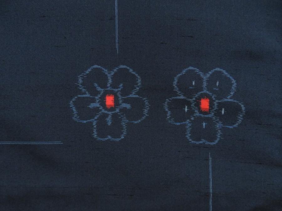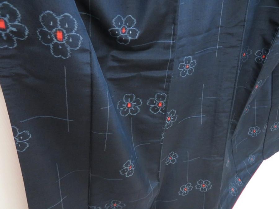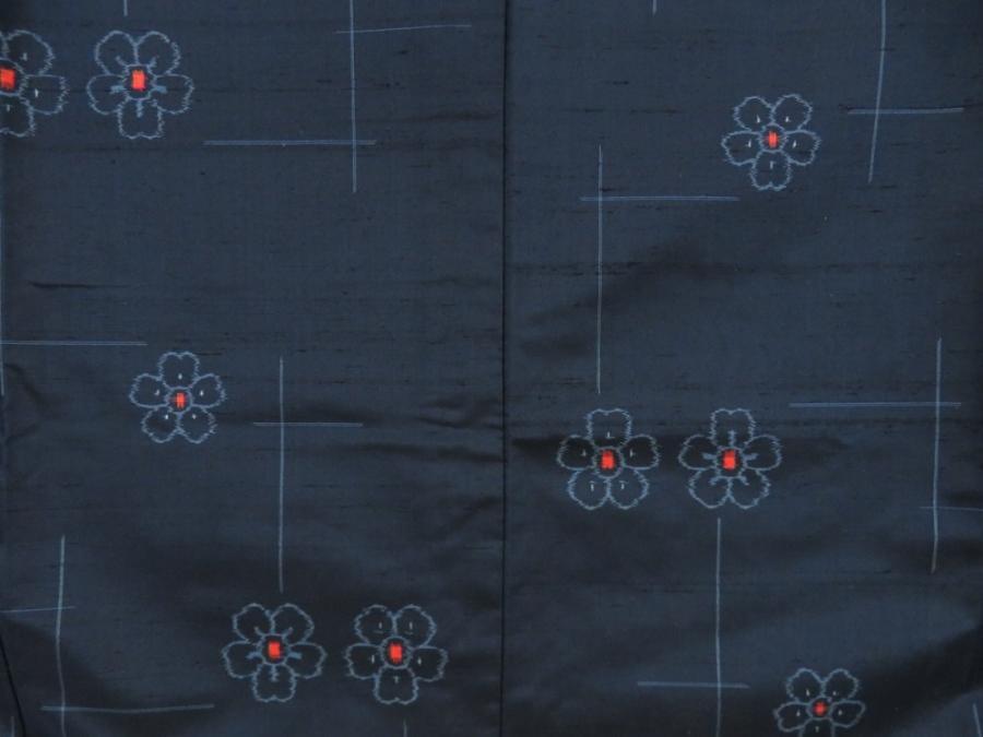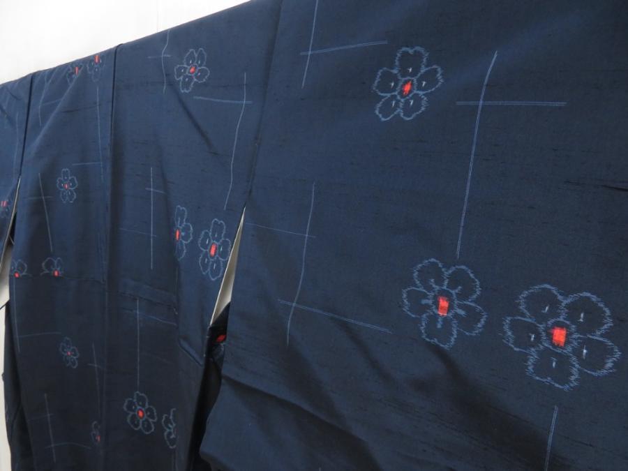 5726T13z810 Vintage Japanese Kimono Silk TSUMUGI Flower Navy