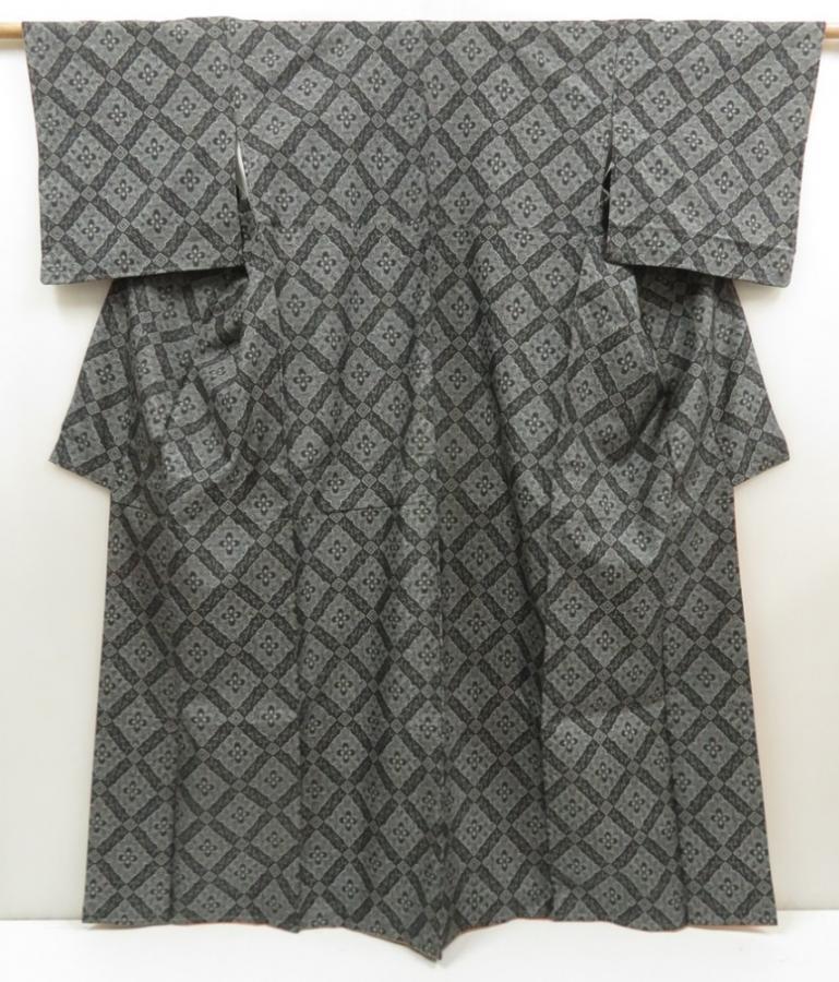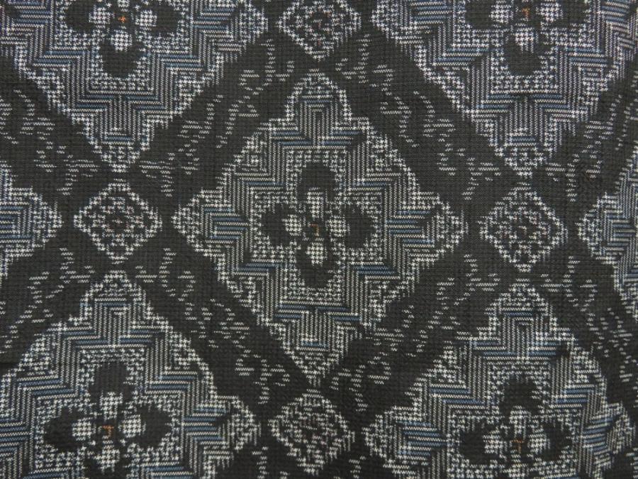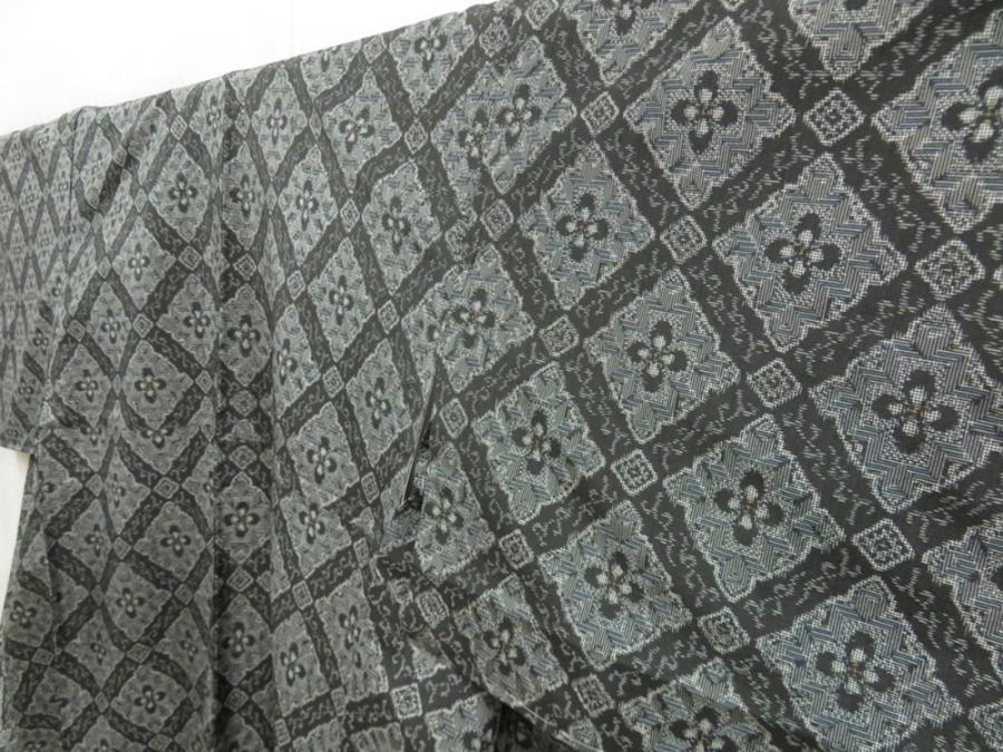 5726T14z670 Vintage Japanese Kimono Silk OSHIMA TSUMUGI Black