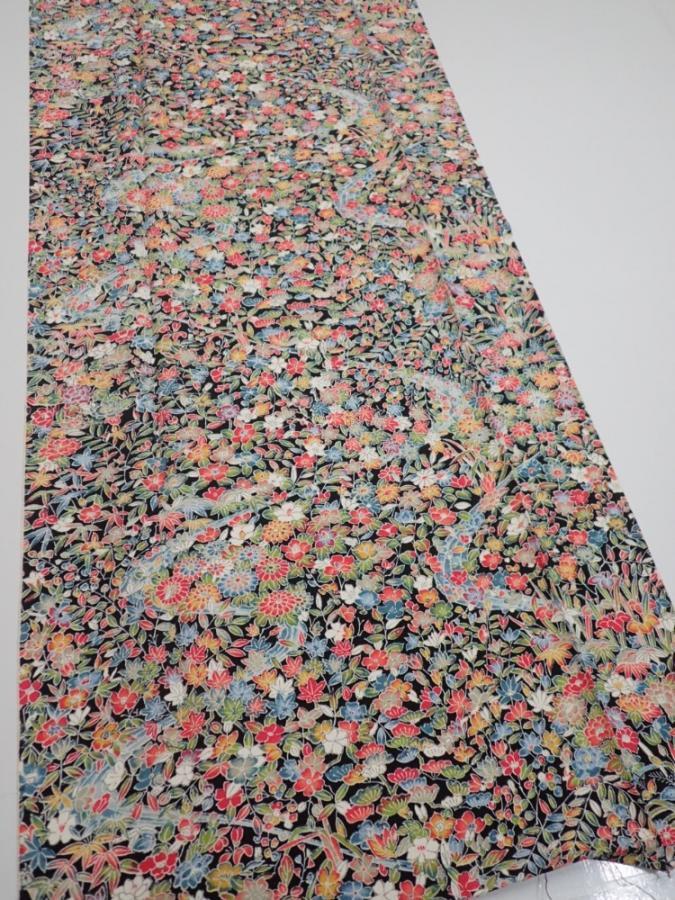 2K06z90 Japanese Kimono Silk FABRIC Flowers Black 66.9x14.6