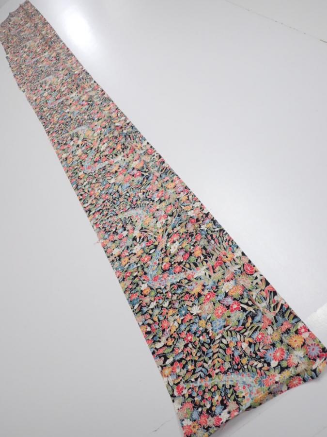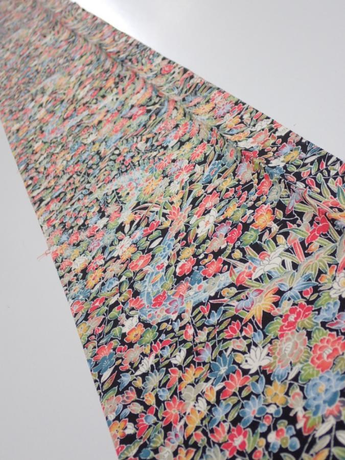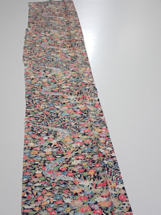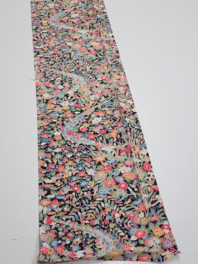 2K08z50 Japanese Kimono Silk FABRIC Flowers Black 63.4x7.5