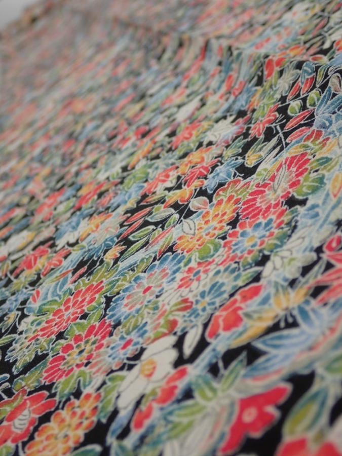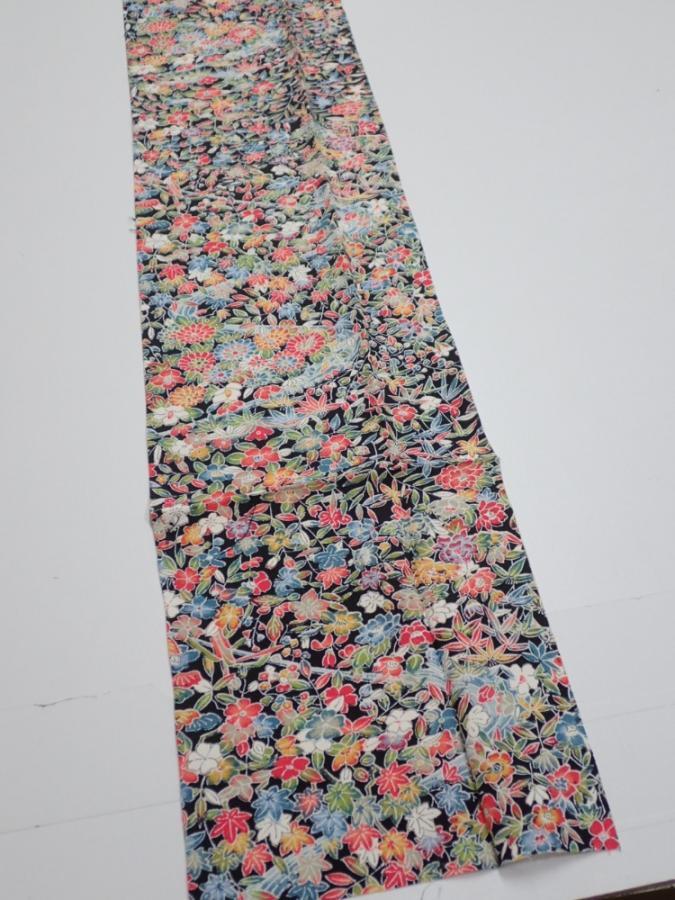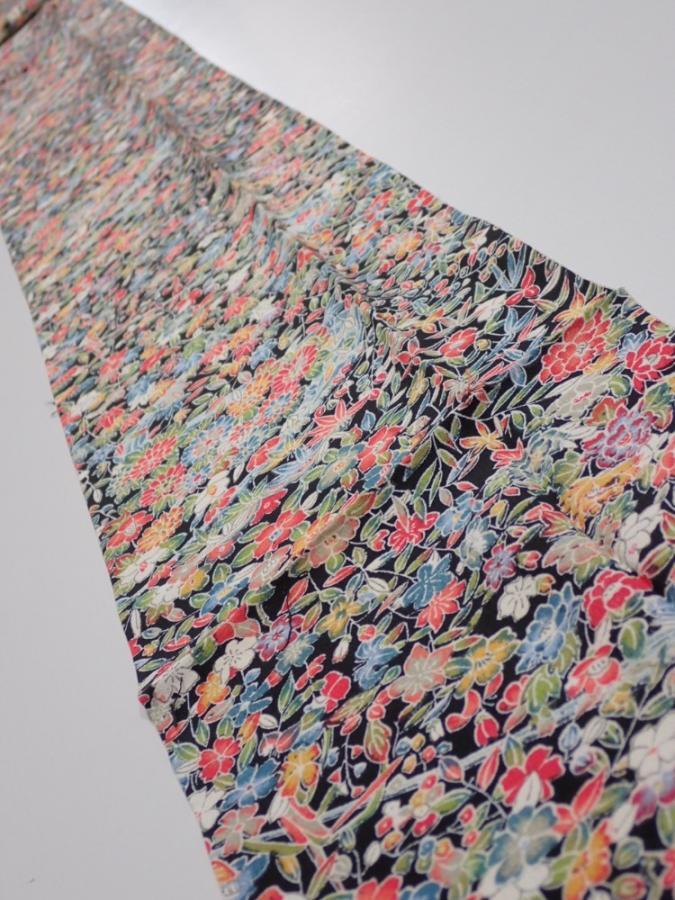2K09z60 Japanese Kimono Silk FABRIC Flowers Black 91.3x6.9