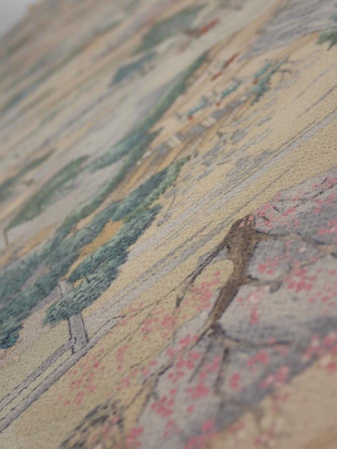 2K04z110 Japanese Kimono Crepe Silk FABRIC Edo era Light brown 70.9x14.8