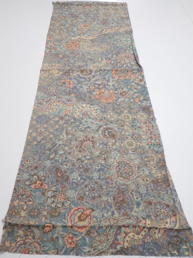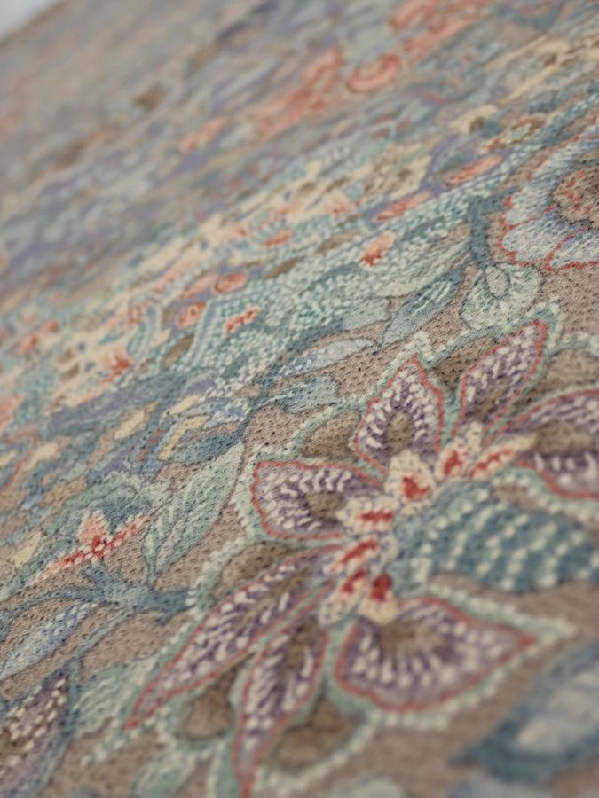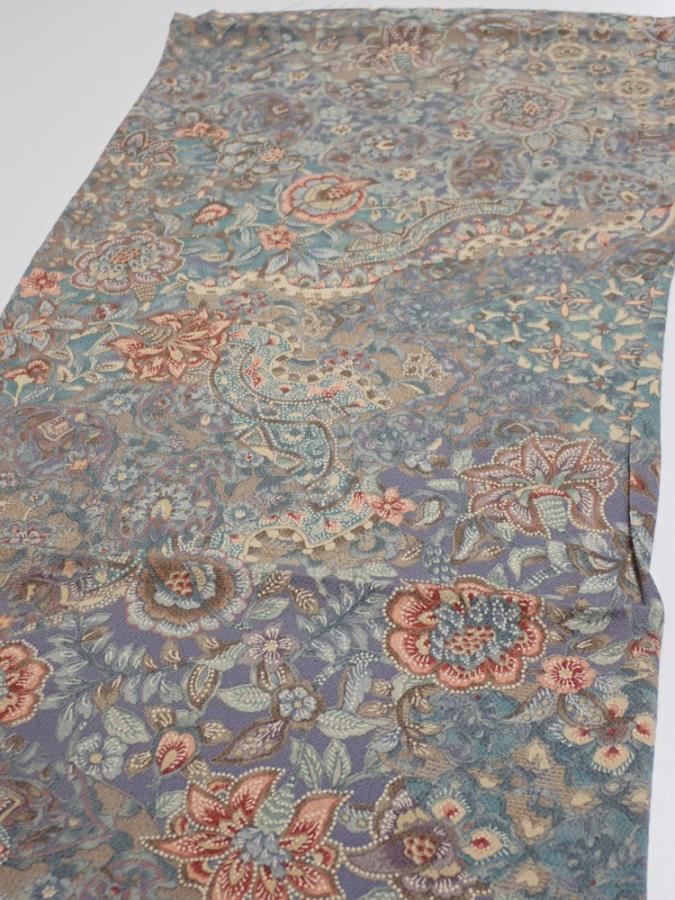 2K02z70 Japanese Kimono Crepe Silk FABRIC Flowers Blue-Gray 40.9x14.6