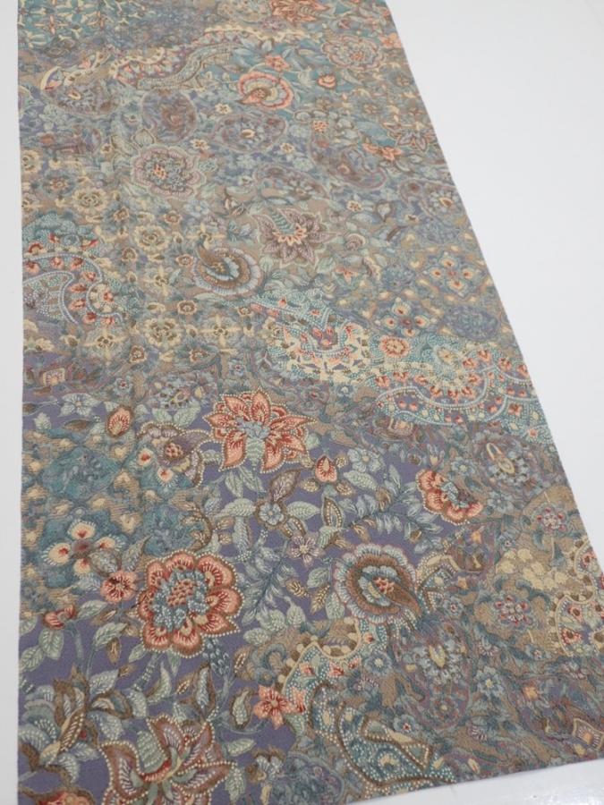 2K03z110 Japanese Kimono Crepe Silk FABRIC Flowers Blue-Gray 68.5x14.4